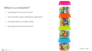 The document discusses the significance of containerization in cloud computing, highlighting Kubernetes and Docker as essential tools for creating lightweight, portable, and efficient applications. It emphasizes the management of containers on Google Cloud, including features like resource isolation, active monitoring, and community collaboration for enterprise-grade frameworks. The document also outlines Kubernetes' role in orchestrating containers, making cluster management straightforward and scalable.