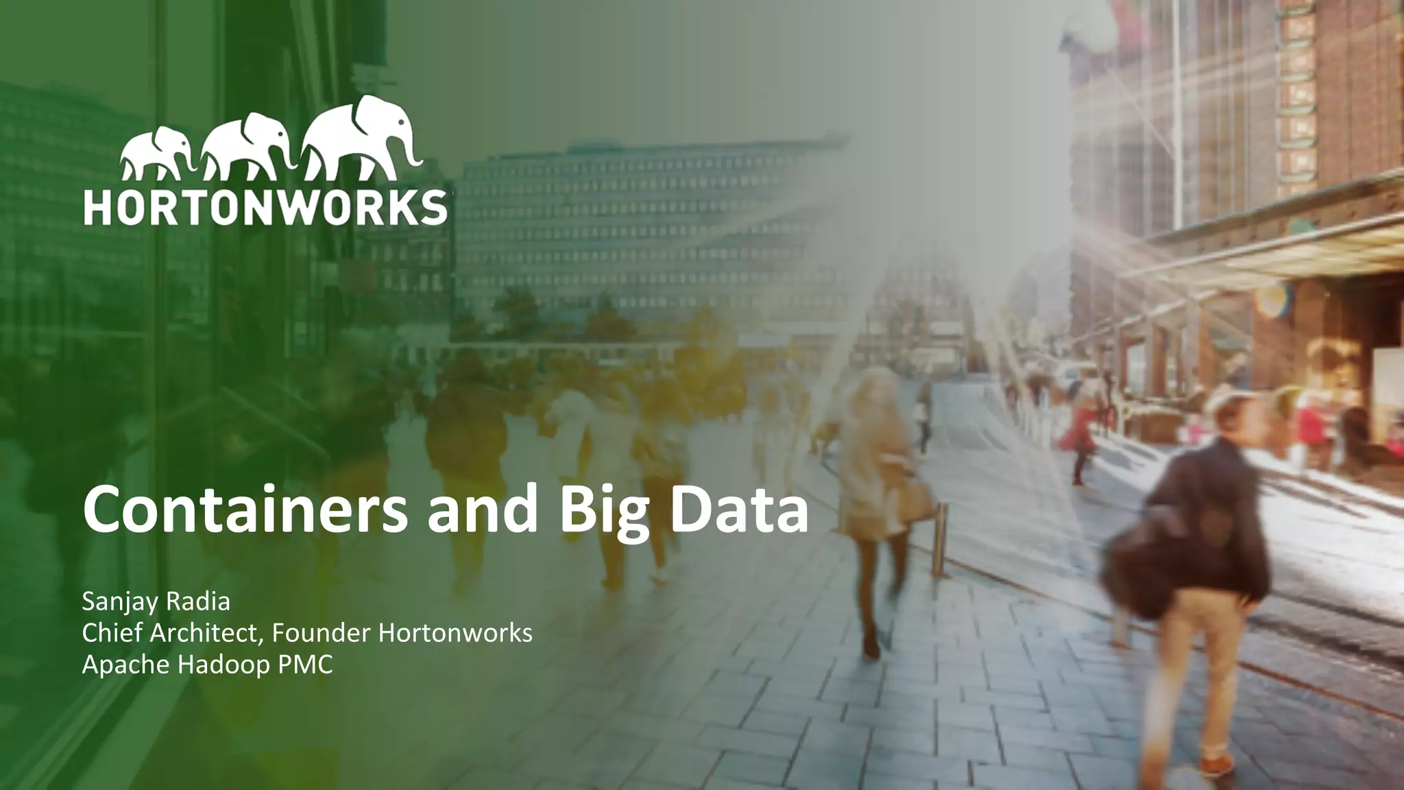 The document discusses the integration of containers and big data frameworks, emphasizing the benefits and challenges of containerization in the big data ecosystem, particularly Apache Hadoop. It outlines considerations for deploying big data workloads within container environments, including hardware utilization, application architecture, and resource management. The presentation anticipates a future where every application and framework will be containerized, facilitating hybrid cloud implementations and improved business agility.