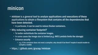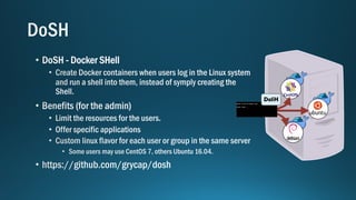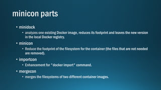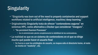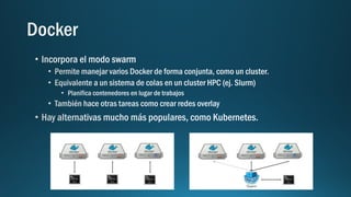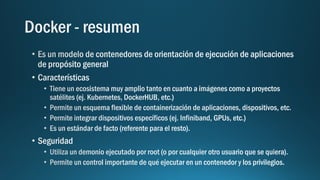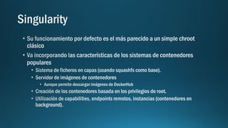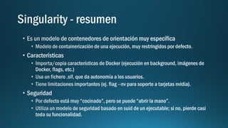 The document details various commands and procedures involving Docker, LXC, and Singularity to manage Alpine Linux containers and implement networking configurations. It includes operations like pulling images, installing packages, setting up cgroups, and managing network interfaces. The content serves as a technical guide for setting up and manipulating containers with a focus on memory management and process control.