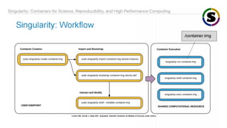 The document outlines a presentation on the use of containers, particularly Docker, in high-performance computing (HPC) environments, scheduled for a meetup on March 15, 2017. It covers topics such as container technology, its application in HPC workloads, and the evolution of Docker as a platform to enhance software delivery. Additionally, it discusses the benefits of containers in terms of reproducibility, portability, and efficient resource management in data centers.