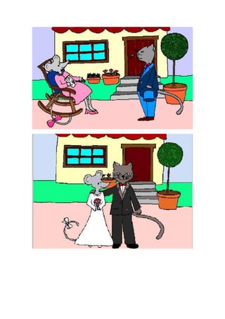 The story is about a little mouse who finds a coin and uses it to buy a pink bow for her tail. Several animals (a dog, sheep, cow, rooster, donkey, pig) ask her to marry them, but she refuses each one based on not liking the sound of their voices. When a cat asks and says "meow," she agrees to marry him. However, on their wedding day the cat puts the mouse in a pot of boiling water and eats her. The story of the little mouse who swept the stairs has now ended.
