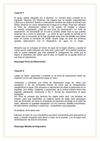 debes observar es como desperdician el agua en tu hogar. Para eso utilizaras