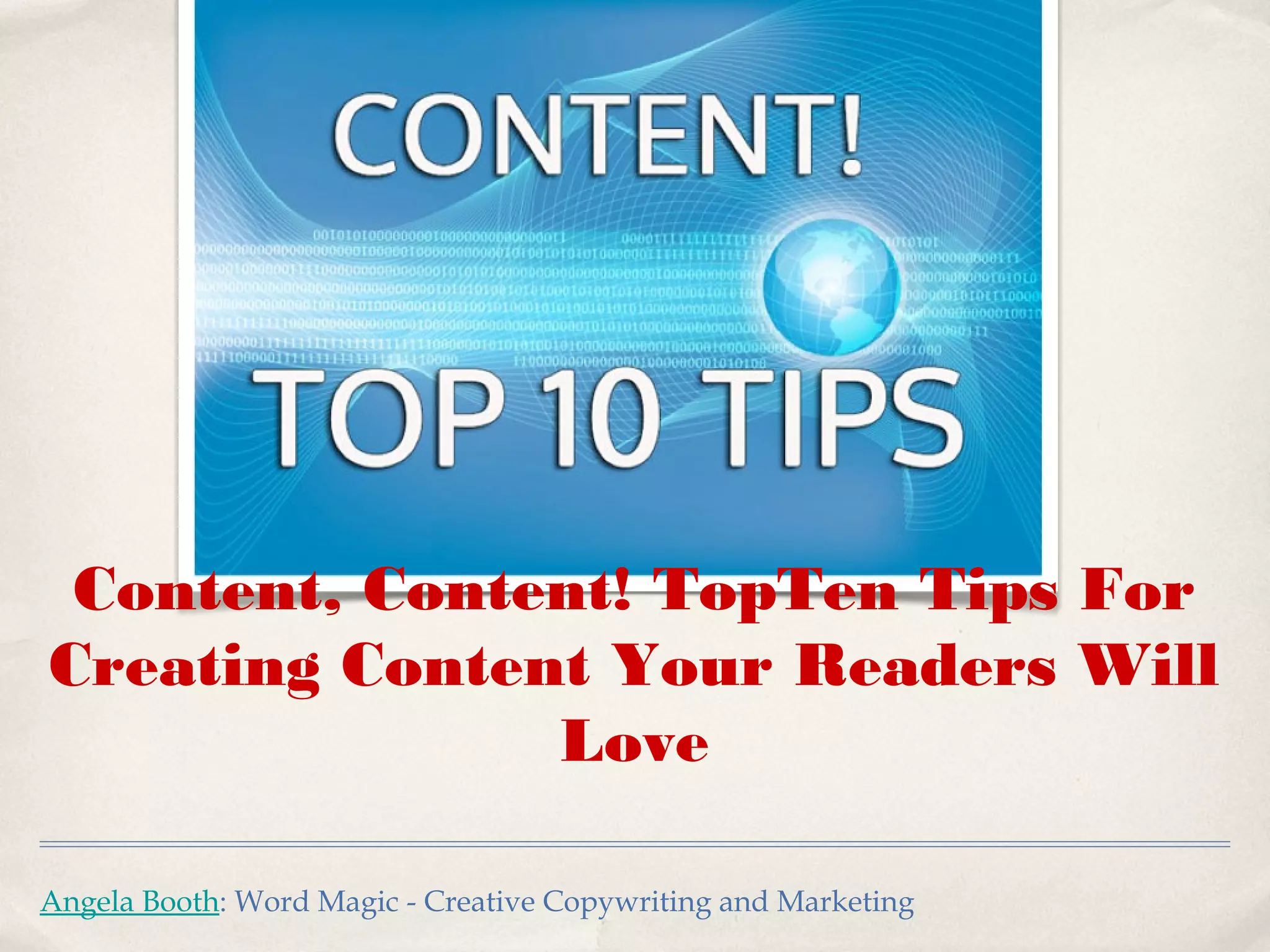 Angela Booth provides ten tips for creating engaging content that resonates with readers, including identifying topics, answering questions, and using images. She emphasizes the importance of social media for inspiration, creating polls, tutorials, case studies, and resource lists. The document serves as a guide for writers and marketers to enhance their content strategies.