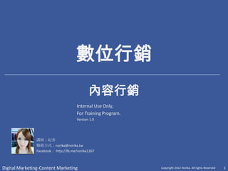 Digital Marketing-Content Marketing Copyright 2012 Norika. All rights Reserved 1