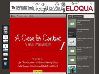 This document outlines strategies for effective content marketing. It begins with an introduction to content marketing and discusses common challenges like topic selection, content creation, distribution, measurement, voice, and goals. It then provides recommendations in each area, such as curating existing content, developing a content calendar, setting key performance indicators, and aligning content with goals. The presentation aims to help audiences overcome complaints and make their content marketing efforts more successful.
