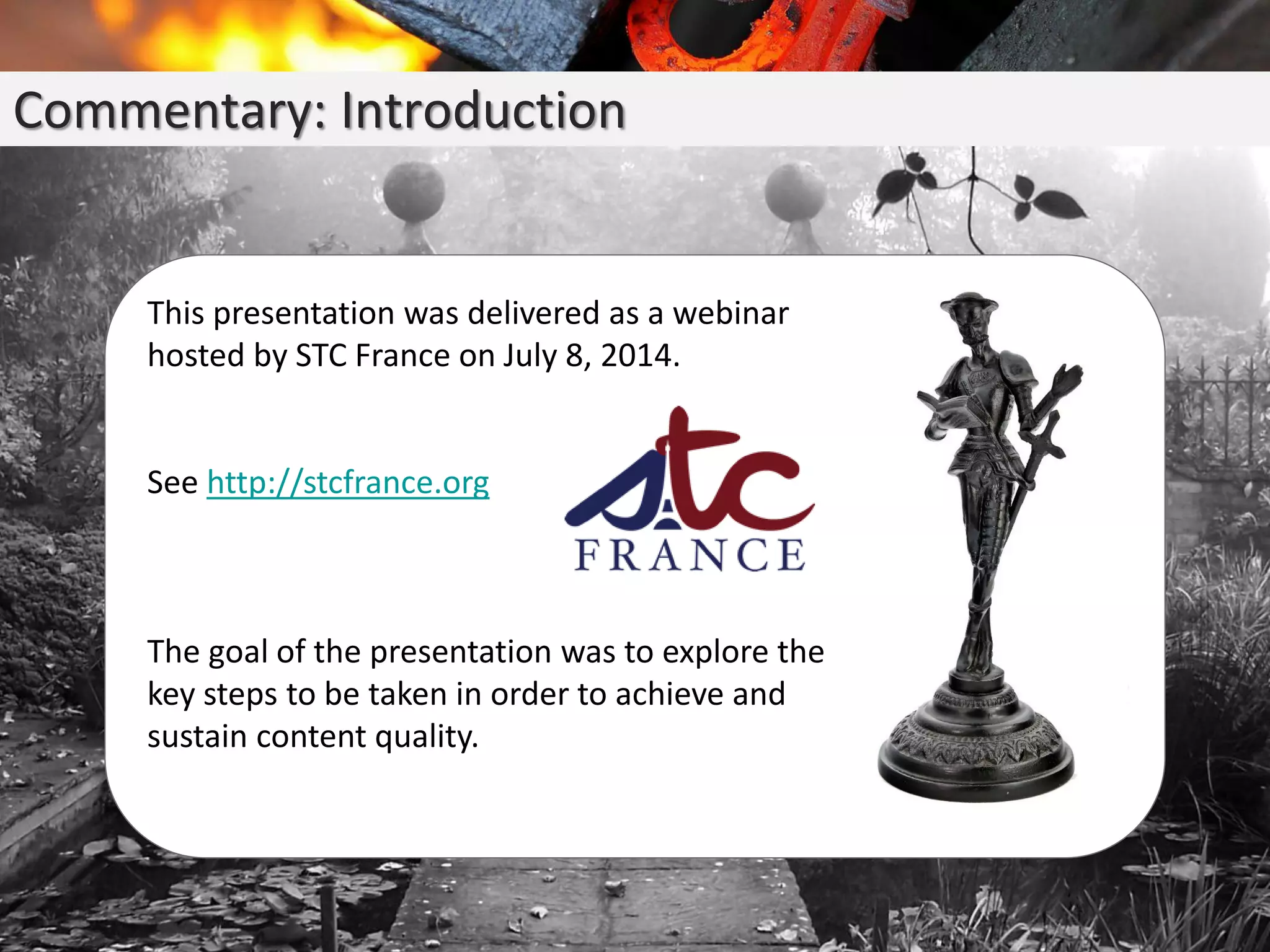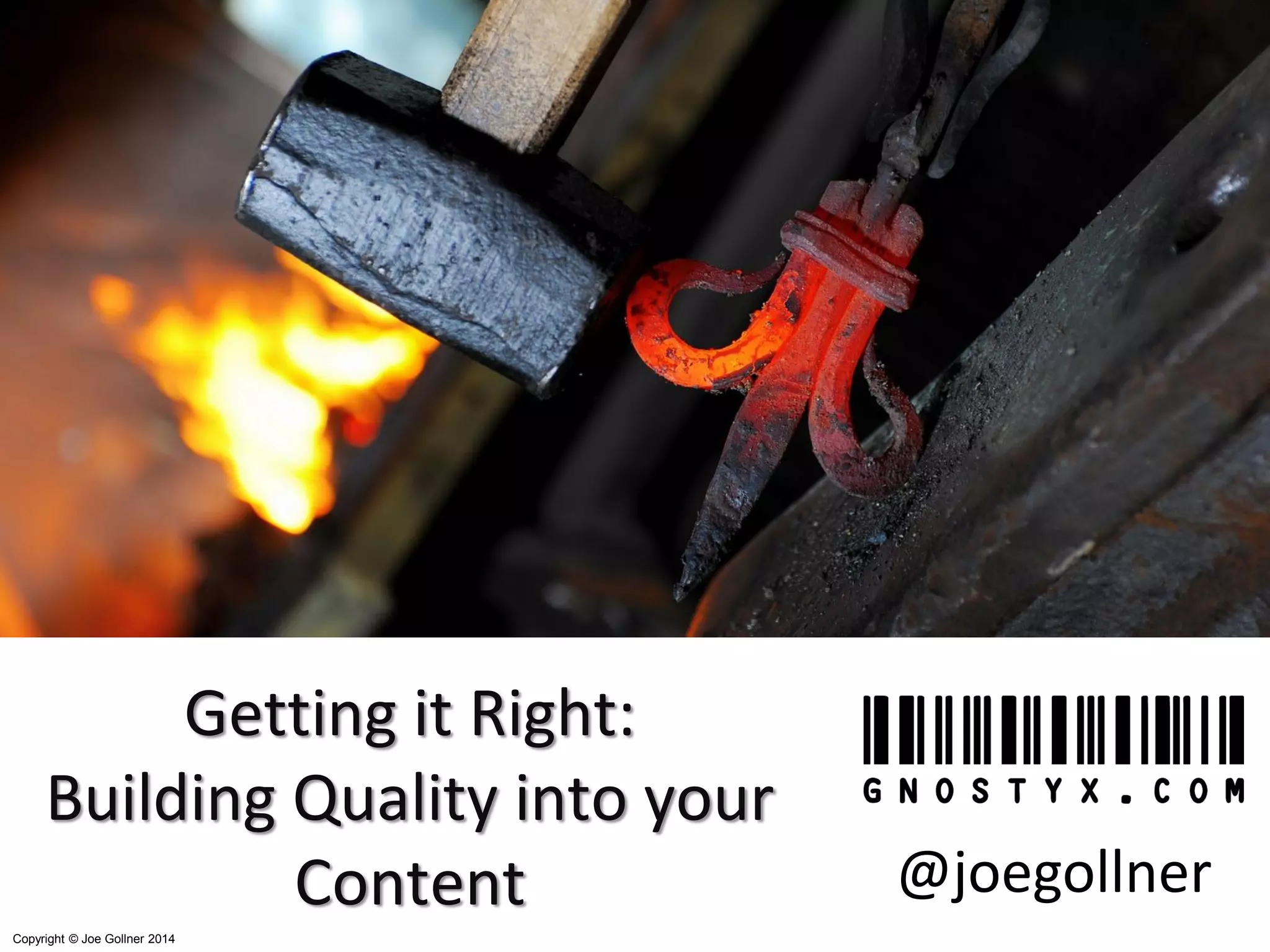 The document discusses key steps for achieving and sustaining content quality, including defining content, understanding the content lifecycle, establishing a content strategy, using appropriate tools, leveraging automation, engaging authors, and understanding that information quality outcomes depend on content quality. It emphasizes balancing the various components, getting feedback from information use, and customizing tools and processes to support authors.