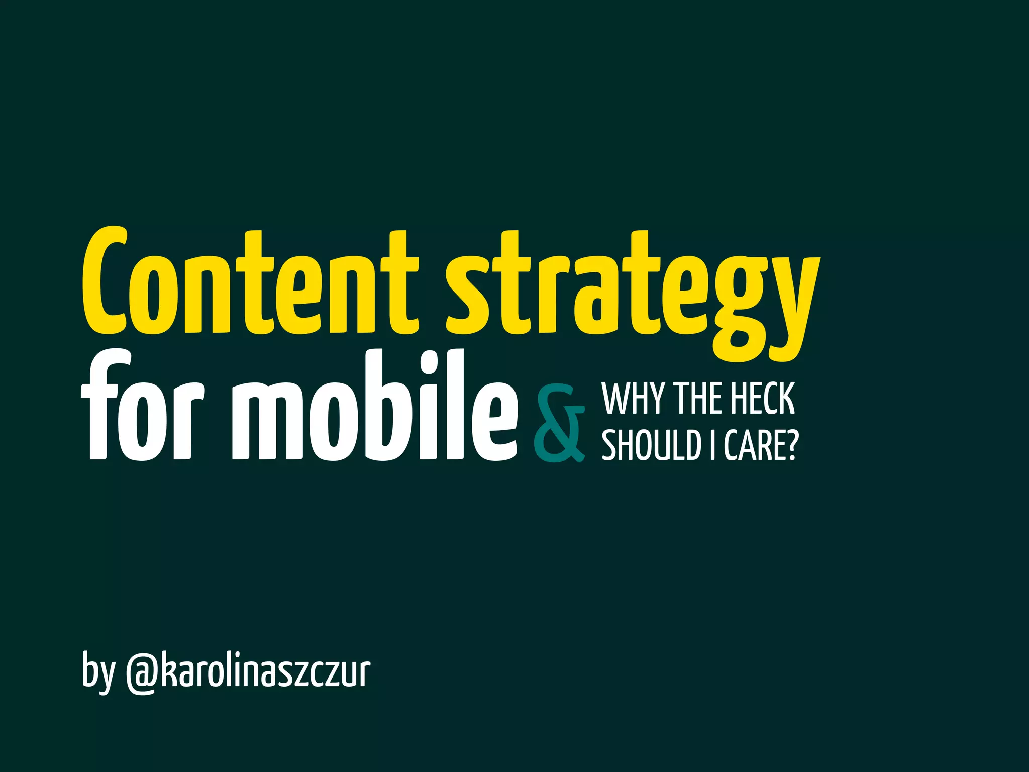 The document discusses mobile content strategy, highlighting the importance of understanding mobile context, becoming responsive, managing content, and designing for usability. It notes the growing prevalence of mobile internet usage and provides guidelines on responsive design techniques such as fluid layouts and media queries. The content emphasizes the need for simplified feature sets on mobile sites and the importance of touch-friendly design patterns.