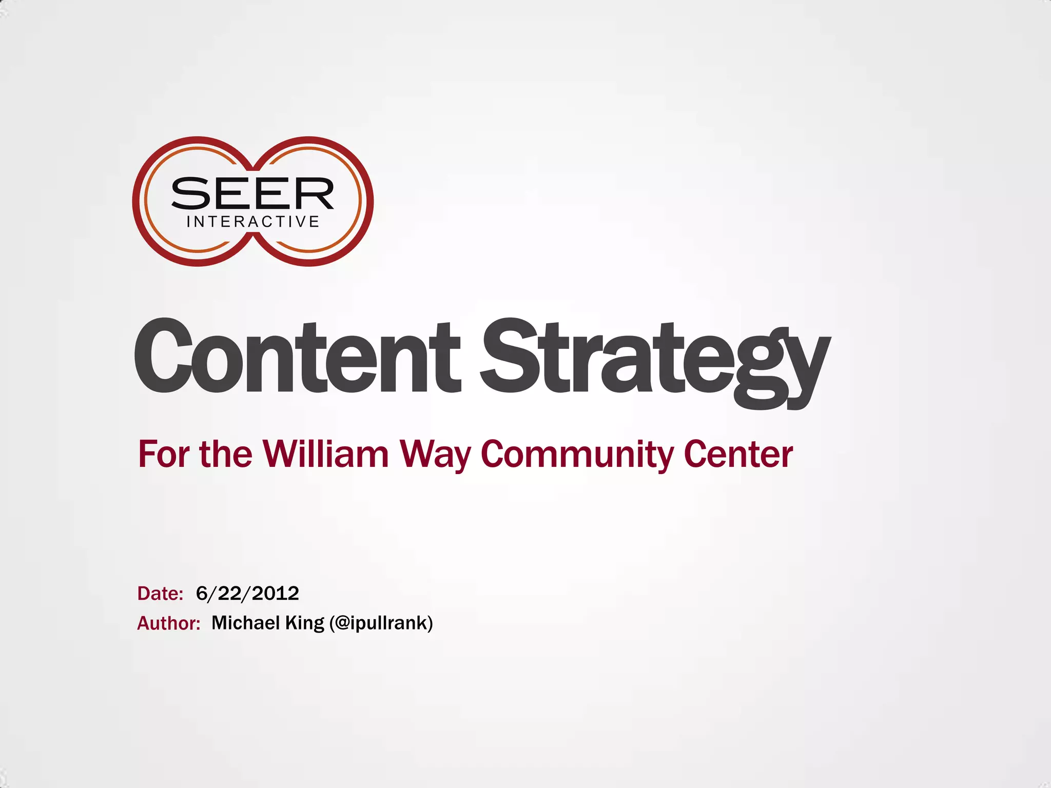 The document outlines a content strategy for the William Way Community Center, emphasizing the importance of creating remarkable content specifically targeted at the LGBT audience to improve engagement and visibility. Key recommendations include enhancing existing media, increasing social media activity, and leveraging community input to humanize the brand and tell compelling stories. The strategy aims to foster well-being and acceptance among sexual and gender minorities through various educational and cultural programming while improving overall brand awareness.