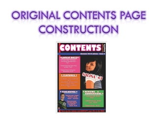 The document describes the process of creating a contents page for a hip-hop magazine. Key steps included: