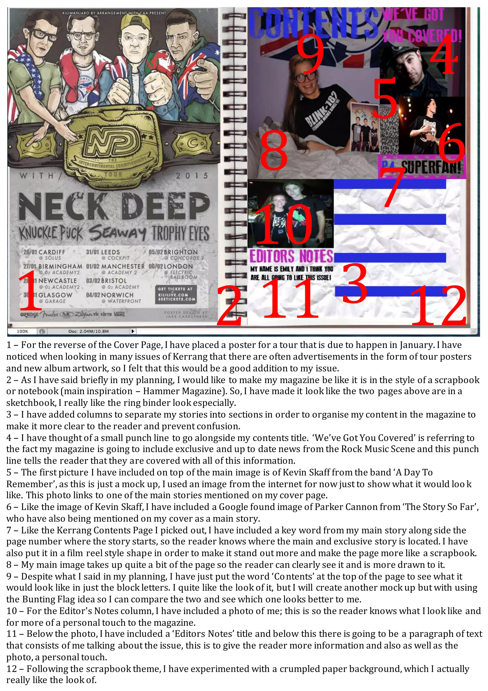 1. The author has included a tour poster on the reverse cover page to advertise upcoming concerts like those seen in Kerrang magazine.