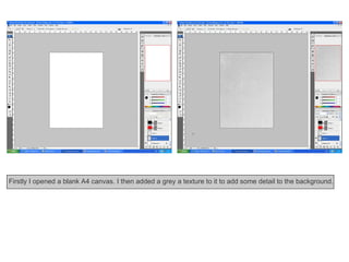 The document summarizes the steps taken to design a contents page in Photoshop. These include adding a textured grey background, red and black boxes to continue the style of the cover, copying text from dafont.com and cutting it out to place in the top right corner. Additional black boxes were made to frame text and grey boxes with 20% opacity were used to display small images. More images and page numbers in boxes were added, with the numbers changed in color for professionalism. Smaller explanatory text was then included, with a microphone image placed behind boxes on the left side for subtle detail.