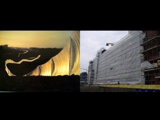 The document discusses different contexts that can frame an audience's or maker's understanding of a work. These contexts include social context, political context, personal context, critical/theoretical context, historical context, geographical context, institutional context, and cultural context. It also discusses how the systems and structures through which a work is presented, such as museums, galleries, hanging methods, and new media can further contextualize the audience's understanding.