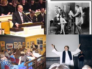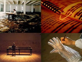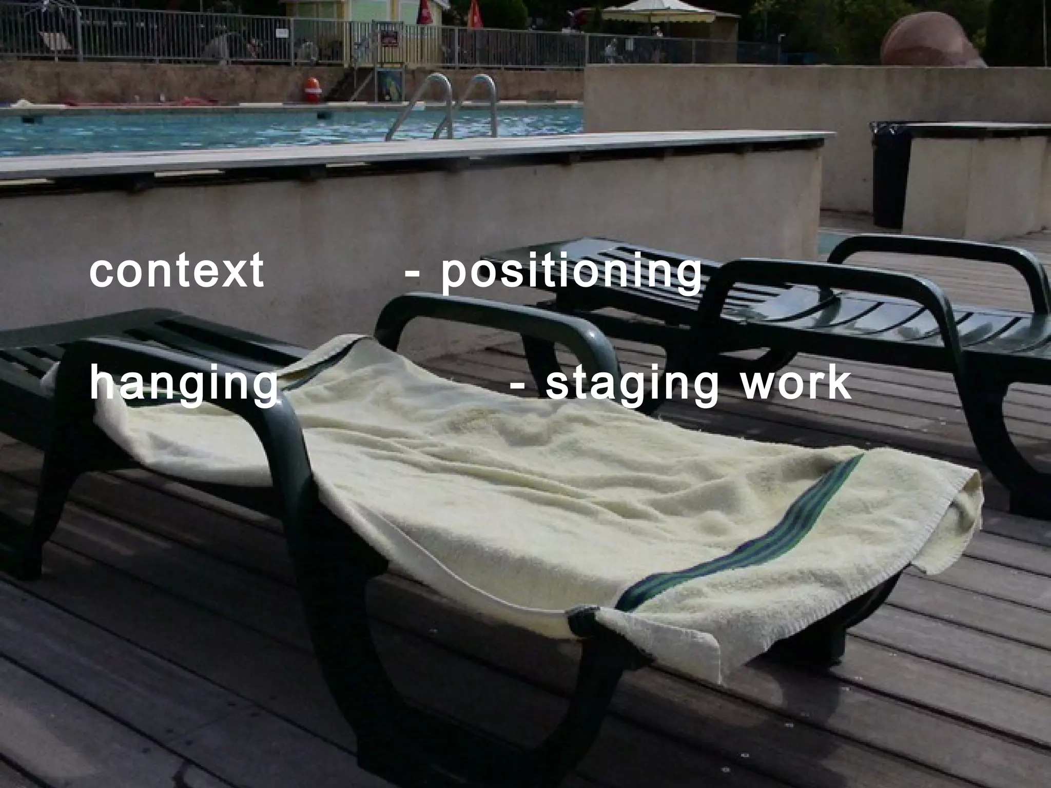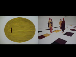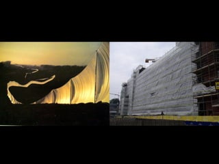 The document discusses how context influences the experience and understanding of artworks. It describes various systems and structures like museums, galleries, books, and digital platforms that mediate how artworks are presented and accessed by audiences and makers. These contexts, like hanging methods, locations, and presentation formats can frame how audiences and artists interpret and relate to creative works.