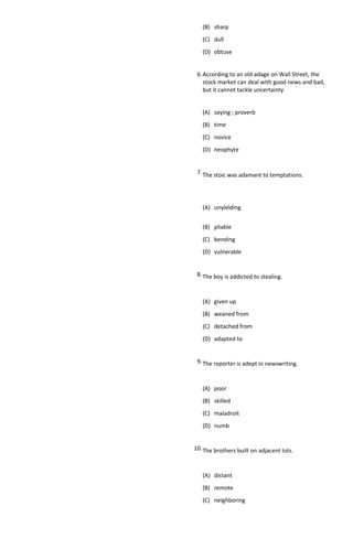 The document appears to be an English exam for students at an Agriculture High School in the Philippines. It contains 35 multiple choice questions that test understanding of words in context. The questions cover a range of vocabulary words including acquisitive, acrid, acrimony, acute, adage, adamant, addicted, adept, adjacent, afflicted, affluent, affronted, aggrandize, aggravated, aghast, agile, agitated, agnostic, agony, agrarian, ailment, akin, alacrity, alert, aligned, allayed, alloy, allure, allusion, altitude, and altruistic. The students must determine the best meaning of each