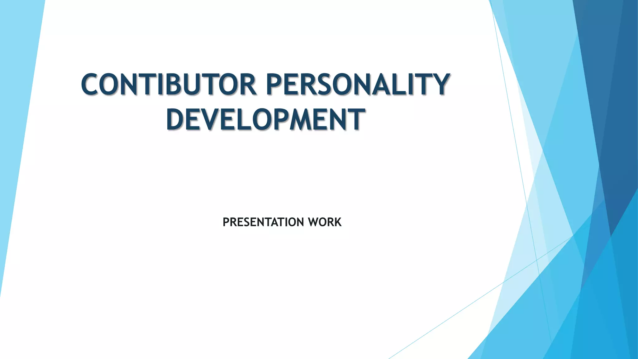 This document discusses the personality traits of a contributor and provides examples. It introduces contributor personality development and is presented by Hardik Chhatbar. A contributor is defined as someone who focuses on goals, takes responsibility, and takes pride in their work. The document then provides an example interview of a retired teacher, Mr. C.M. Chhatbar, who exemplifies contributor traits such as preparing lessons thoroughly, caring about students' understanding and needs, and helping students financially when able. The conclusion states that Mr. Chhatbar was hardworking, honest, and kind, understanding his responsibilities and caring for students, which contributed to his promotions throughout his career.