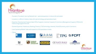 Hvantage Technologies Inc. specializes in providing contingent workforce and resource solutions to address skills gaps through freelancers, consultants, and temporary workers. The company aims to help businesses adapt to fluctuating market demands with a flexible workforce that minimizes costs and improves operational efficiency. With expertise across various industries, they focus on delivering tailored services and building strong client relationships.