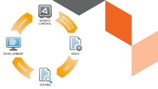 The document discusses continuous integration and delivery in software development, focusing on reducing integration problems and increasing release velocity. It covers the benefits of feature toggles, feedback loops, and proposed workflows for efficient development in Magento environments. Additionally, it emphasizes testing and deployment practices to ensure high-quality software delivery.