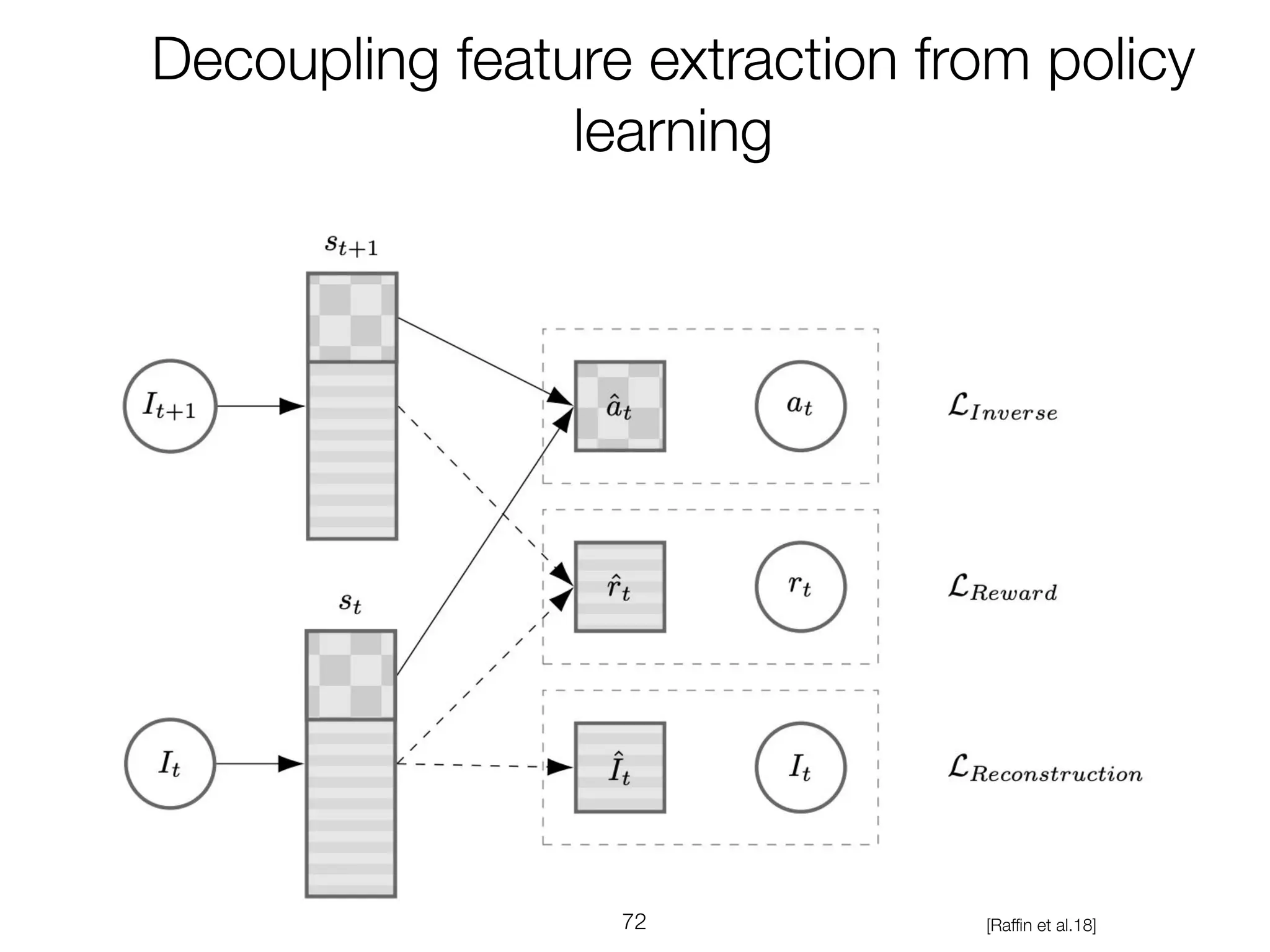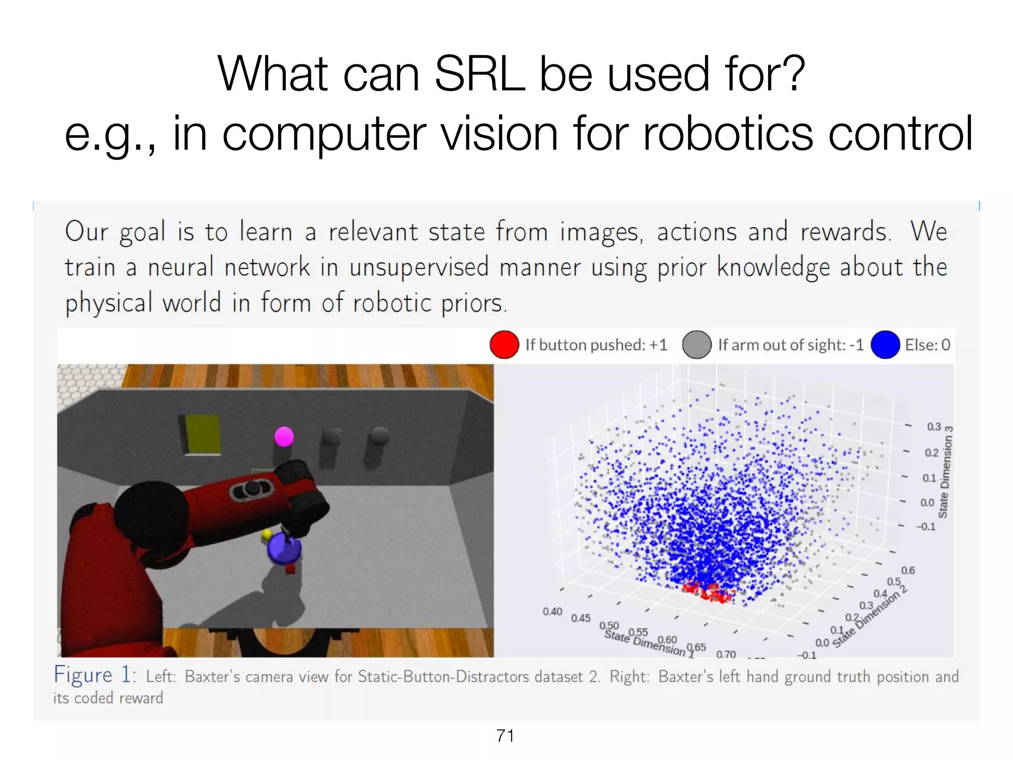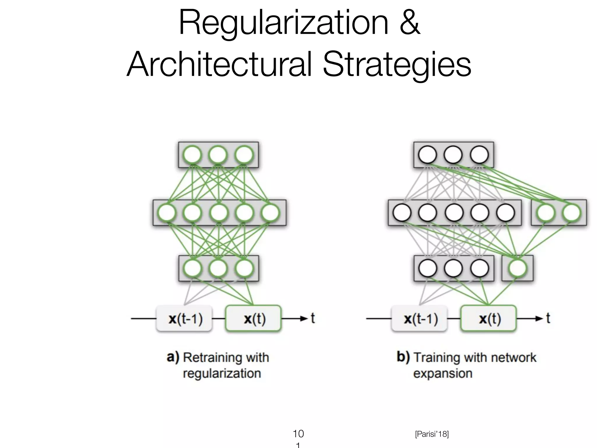 This document provides an overview of continual learning and state representation learning, including key papers in the fields. It summarizes various benchmark datasets used to evaluate continual learning models, such as MNIST, Fashion MNIST, and CORe50. Environments used to evaluate state representation and reinforcement learning are also cited, including ViZDoom and CRLMaze. Overall modeling approaches discussed include convolutional neural networks, policy distillation, and sim-to-real transfer for continual reinforcement learning.