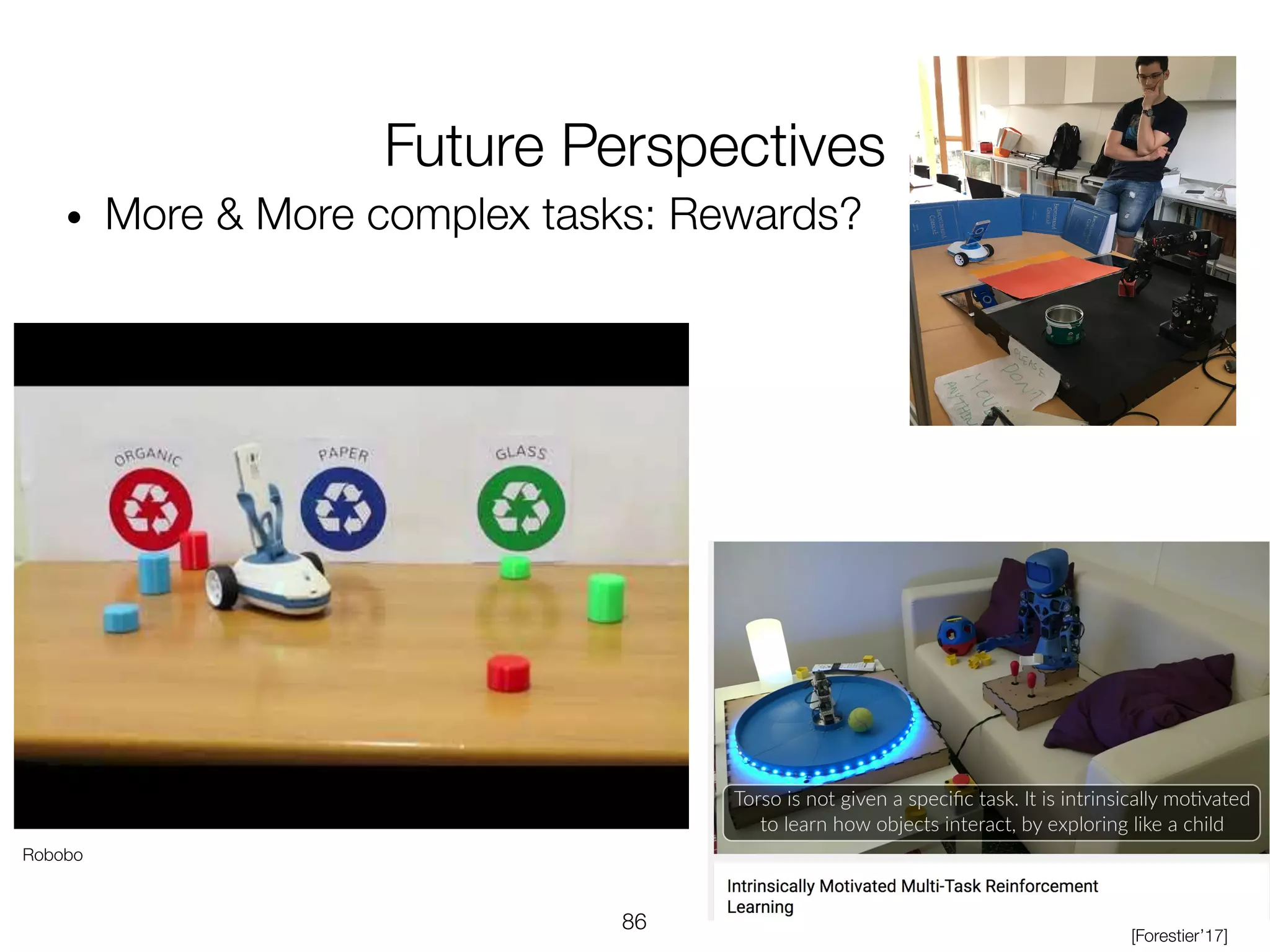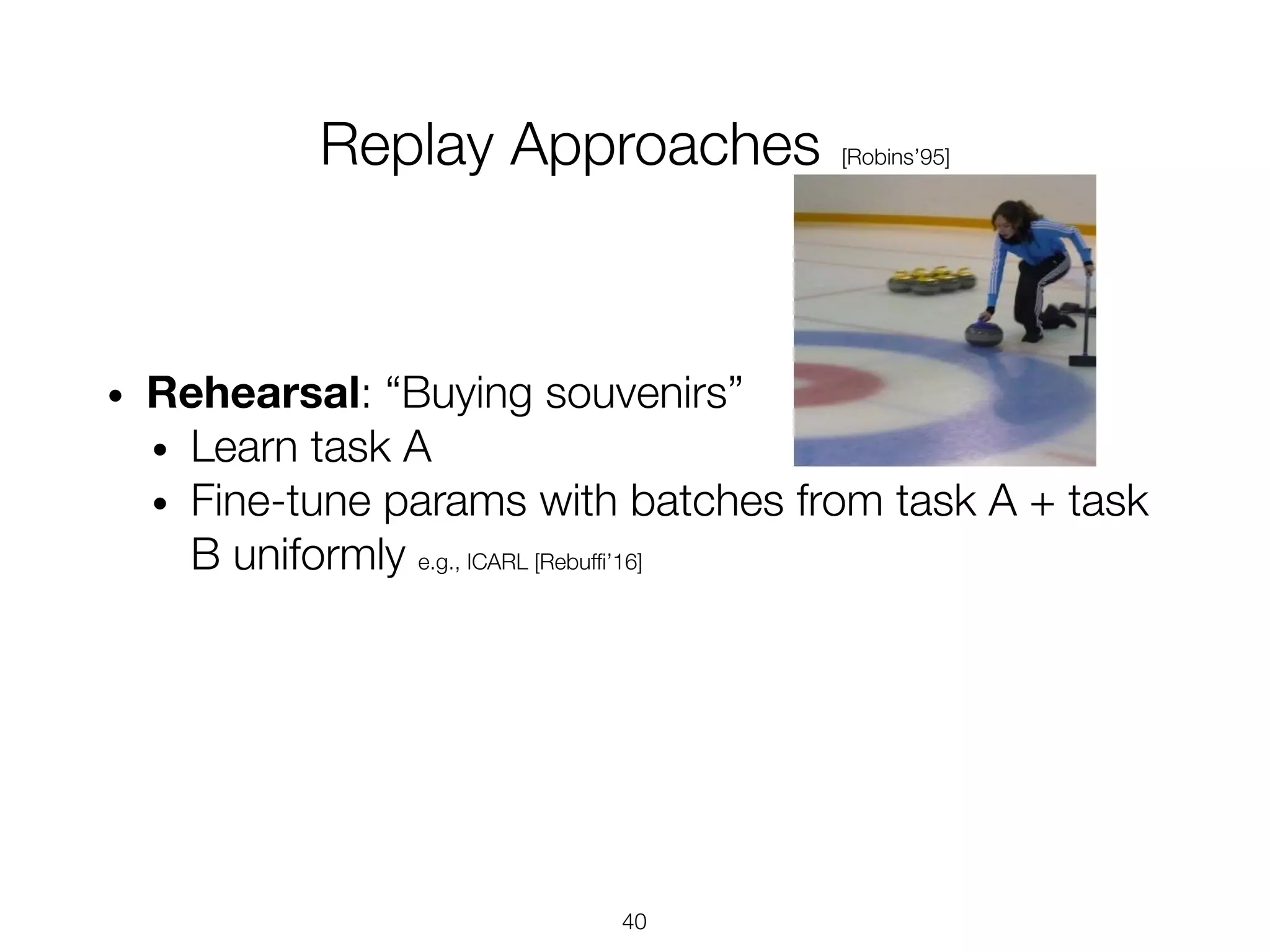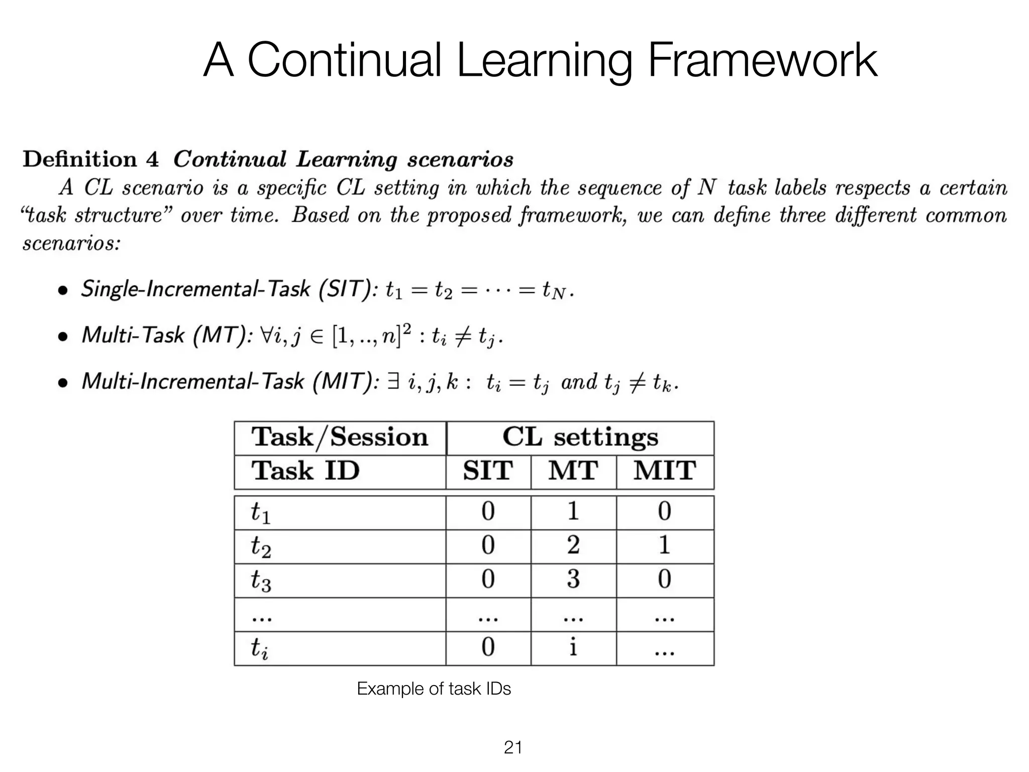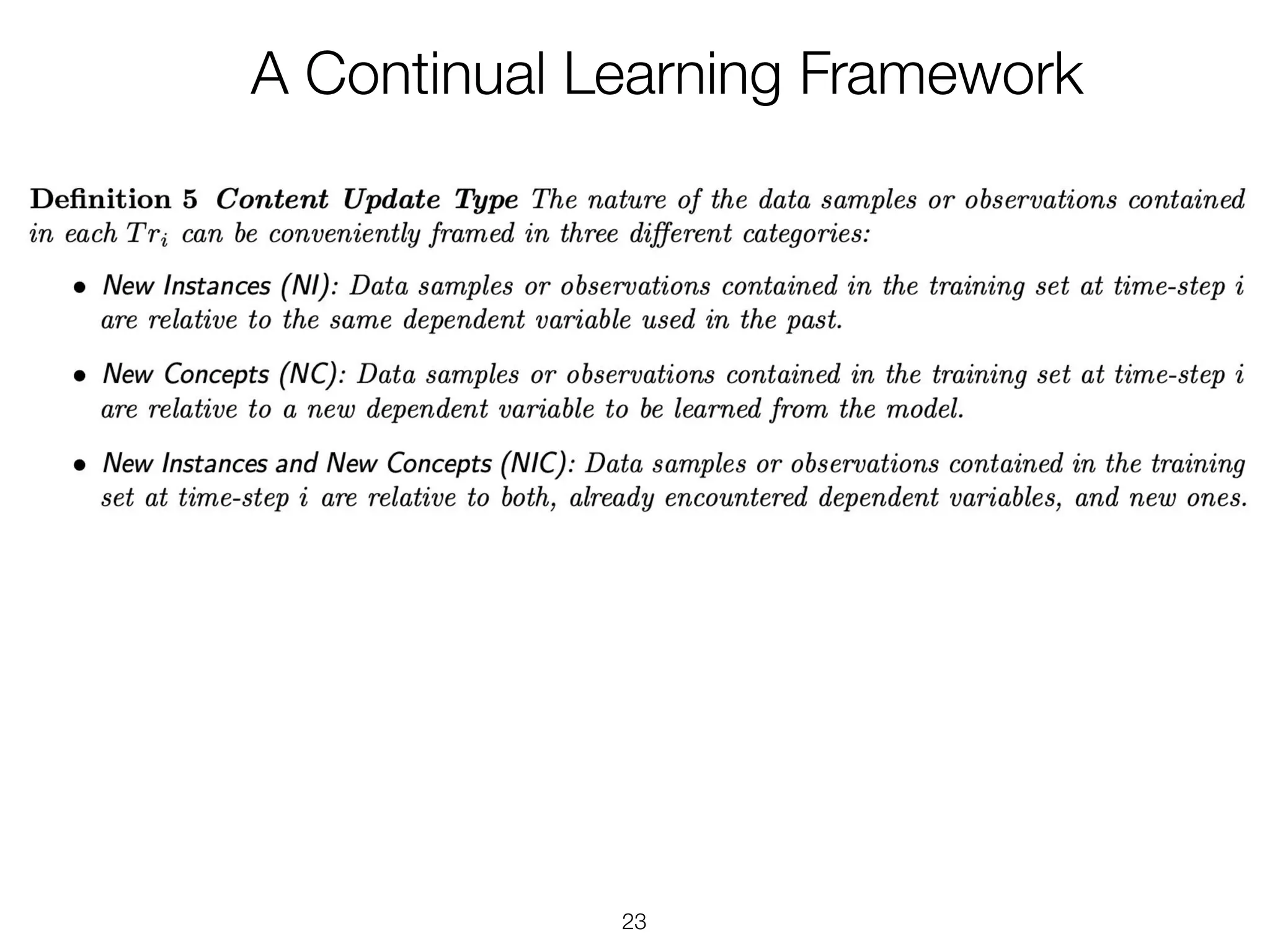 This document provides an overview of continual learning and state representation learning, including key papers in the fields. It summarizes various benchmark datasets used to evaluate continual learning models, such as MNIST, Fashion MNIST, and CORe50. Environments used to evaluate state representation and reinforcement learning are also cited, including ViZDoom and CRLMaze. Overall modeling approaches discussed include convolutional neural networks, policy distillation, and sim-to-real transfer for continual reinforcement learning.