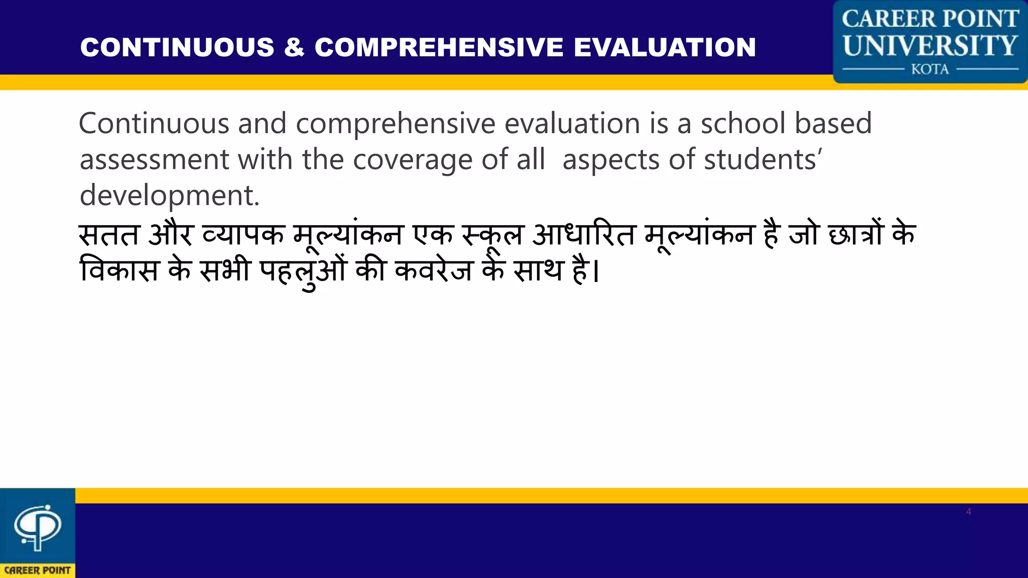 छात्रों की िृद्धध और विकास के धिन्न्हत पहलुओां के मूलयाांकन पर जोर देने के शलए ननरांतर साधन यह एक