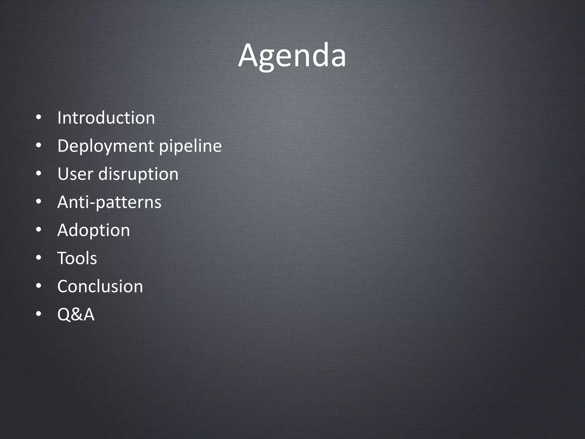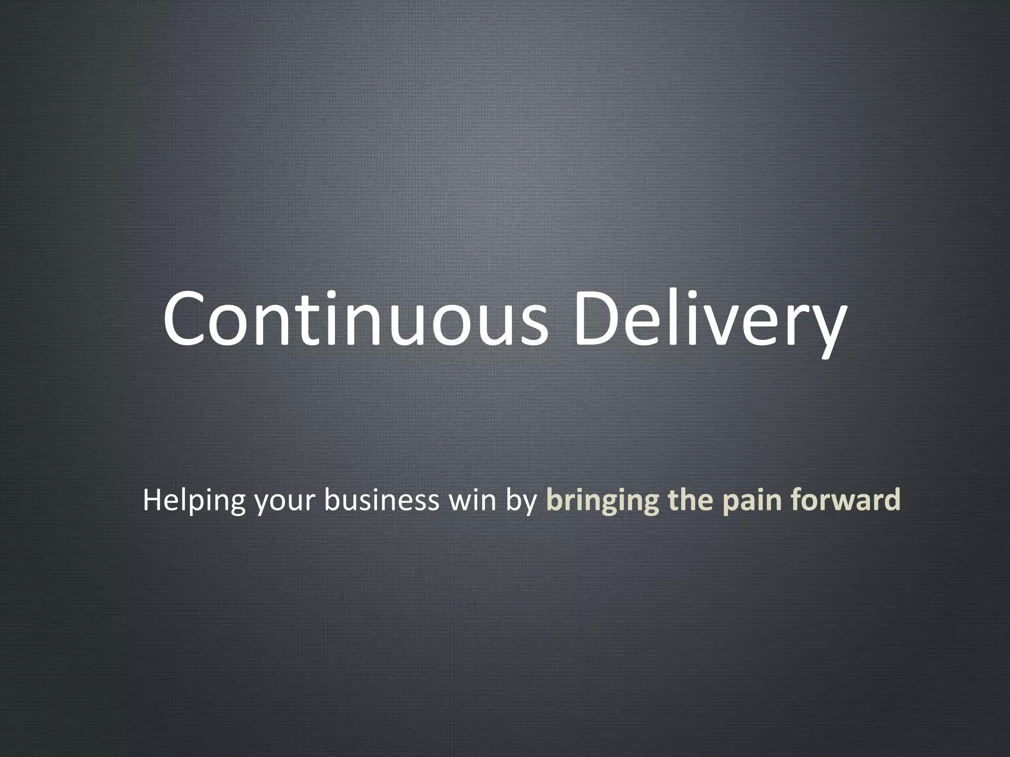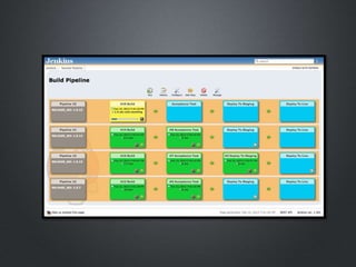 This document discusses continuous delivery, which is an agile methodology for frequently delivering incremental software changes to users. It involves fully automating the build, deployment, testing and release processes through a deployment pipeline. This reduces costs and risks while ensuring that quality software is delivered to users quickly. The document outlines various goals and best practices of continuous delivery, such as automating everything possible, testing excessively, and avoiding anti-patterns like code freezes or manual deployments. It also discusses tools that can help with continuous delivery and adopting this approach.
