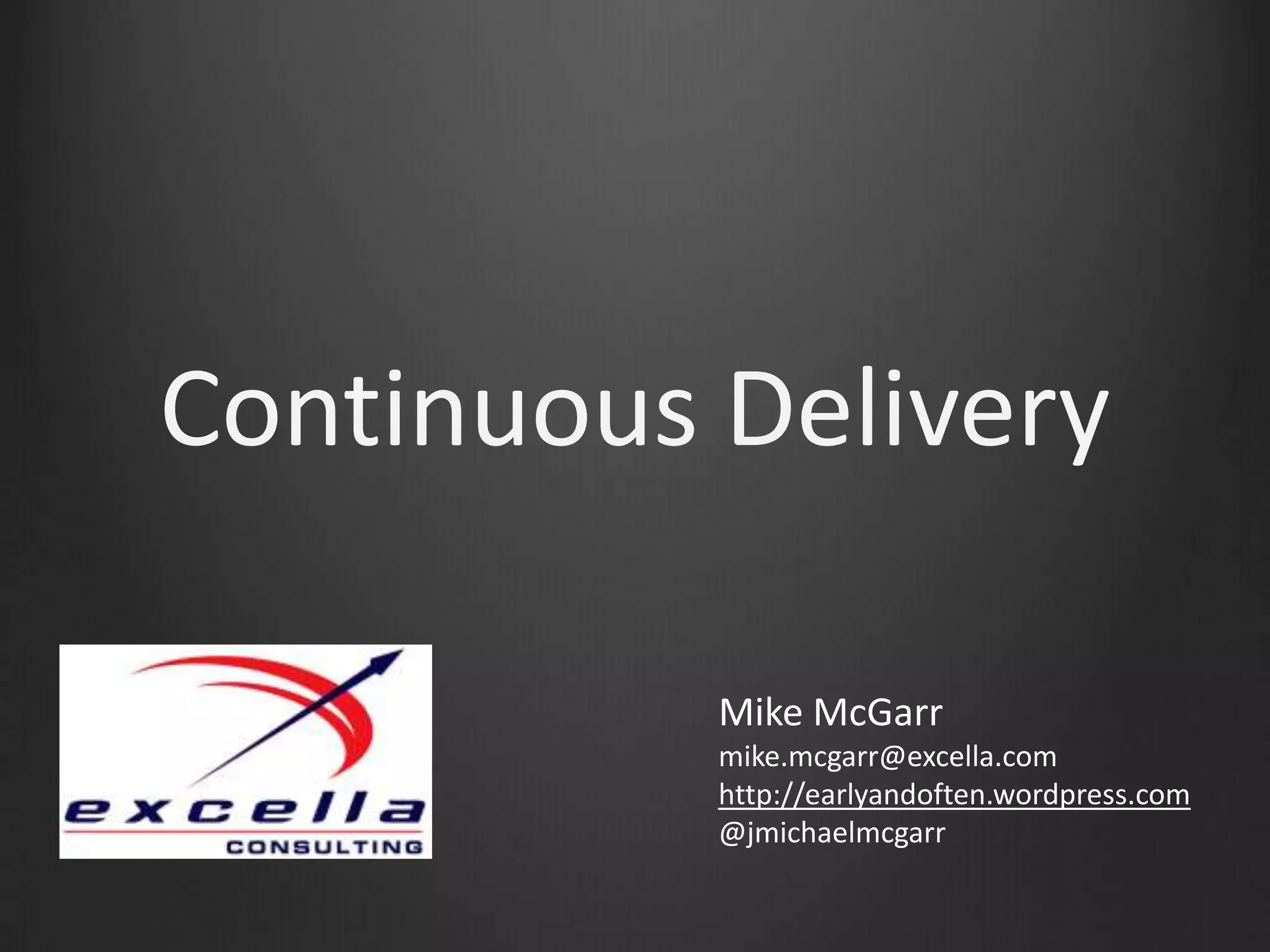 The document discusses continuous delivery, outlining its principles and core practices aimed at enhancing software development efficiency. It contrasts traditional waterfall methods with agile approaches to highlight the benefits of continuous integration and deployment, emphasizing the importance of automation and collaboration. Key components include build pipelines, testing strategies, and deployment automation to enable faster and more reliable software releases.