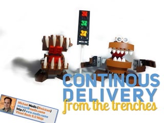 The document discusses continuous delivery in software development, contrasting traditional waterfall methodologies with agile practices. It emphasizes the importance of automation, integration, and continuous improvement in streamlining development and deployment processes. The author's approach advocates for identifying and addressing inefficiencies to create a more effective and less error-prone development cycle.