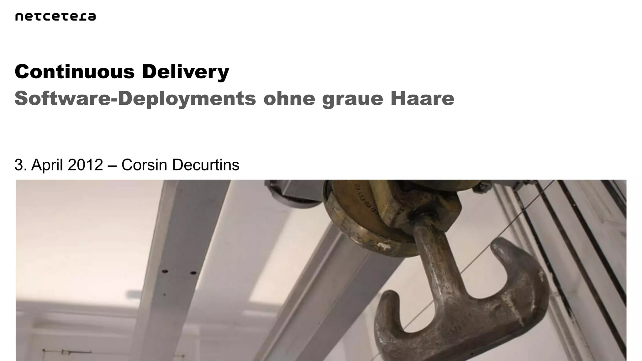 The document discusses approaches to software deployments, noting that traditional organizations deploy software 4 times per year while newer organizations deploy software 15 times per day. It advocates automating the entire software delivery pipeline including deployments to reduce risks and costs, by applying the principle of "if it hurts, do it often" through continuous integration, delivery, and deployment.
