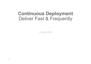 The document discusses the concept of continuous deployment, emphasizing its ability to facilitate fast and frequent software changes. It reflects on the transition from traditional methods of production to continuous deployment practices, detailing the technologies and processes involved. The author highlights key elements such as collaboration, transparency, and the cultural shift necessary for successful implementation.
