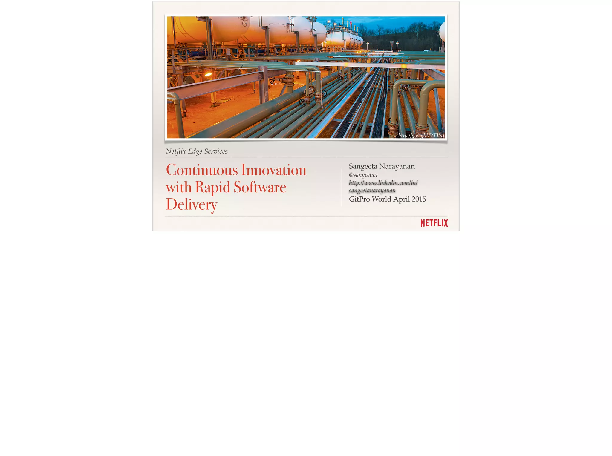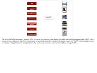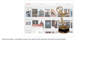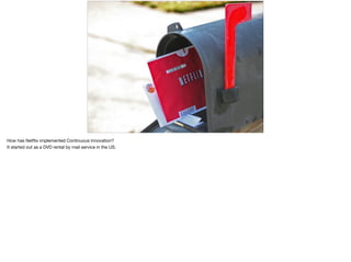 The document discusses Netflix's approach to continuous innovation through microservices and rapid software delivery. Key practices include a delivery pipeline, hands-free deployments, and real-time operational insights, emphasizing the benefits and complexities of distributed systems. The culture at Netflix supports this innovation with a focus on freedom and responsibility among teams.