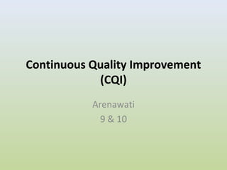 This document discusses Continuous Quality Improvement (CQI). It provides definitions and goals of CQI, including: