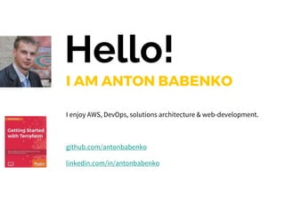 The document presents an overview of implementing infrastructure as code using Terraform and Packer, highlighting key concepts, commands, and best practices for usage in AWS environments. It covers the evolution of Terraform, its comparison with CloudFormation, and advanced features like variables, modules, and remote states. Additionally, it discusses team collaboration, CI/CD workflows, and provides resources for further learning.