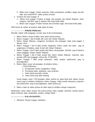 1. Tergugat mengajukan eksepsi atas gugatan penggugat yang dianggap kabur.
