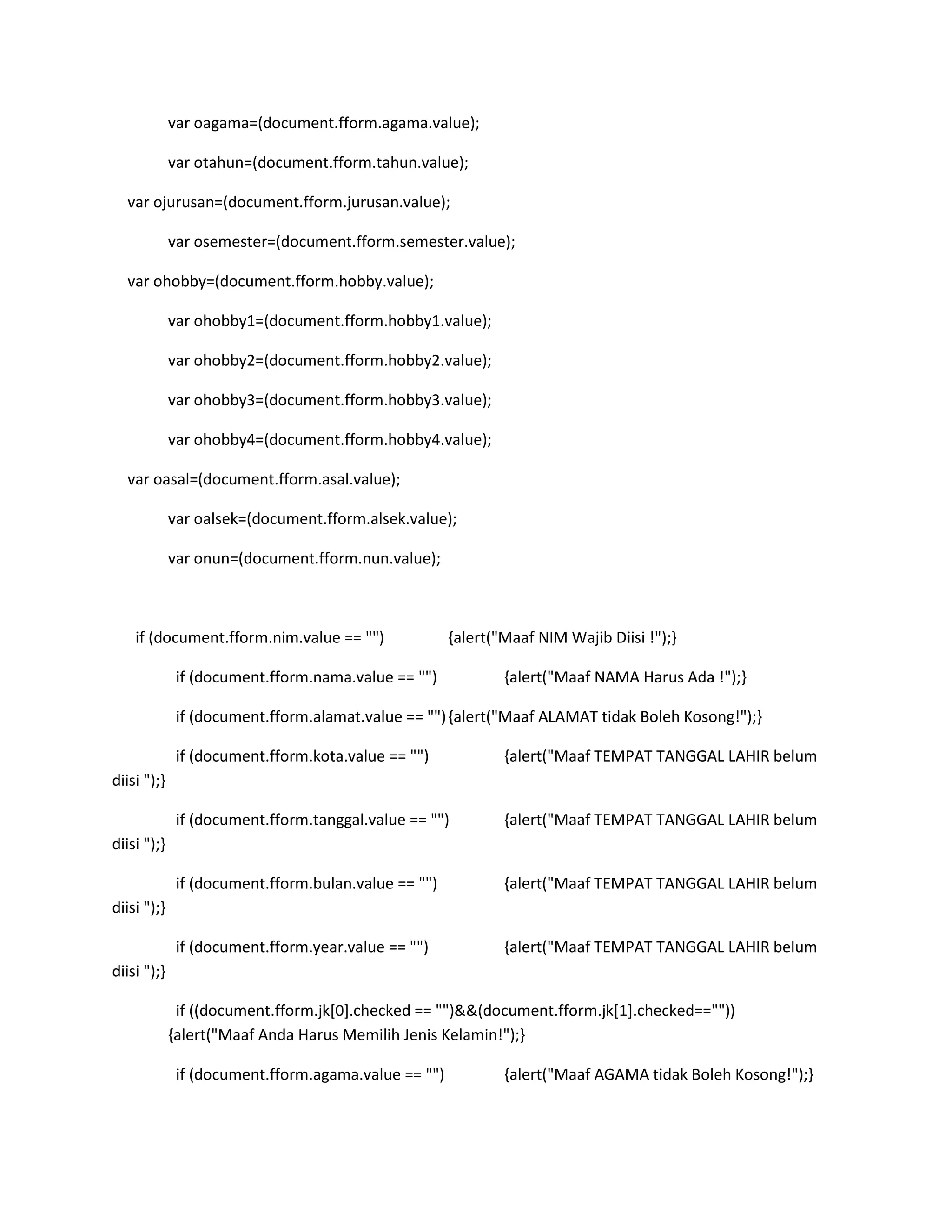 JavaScript pembuatan Formulir Mahasiswa Baru