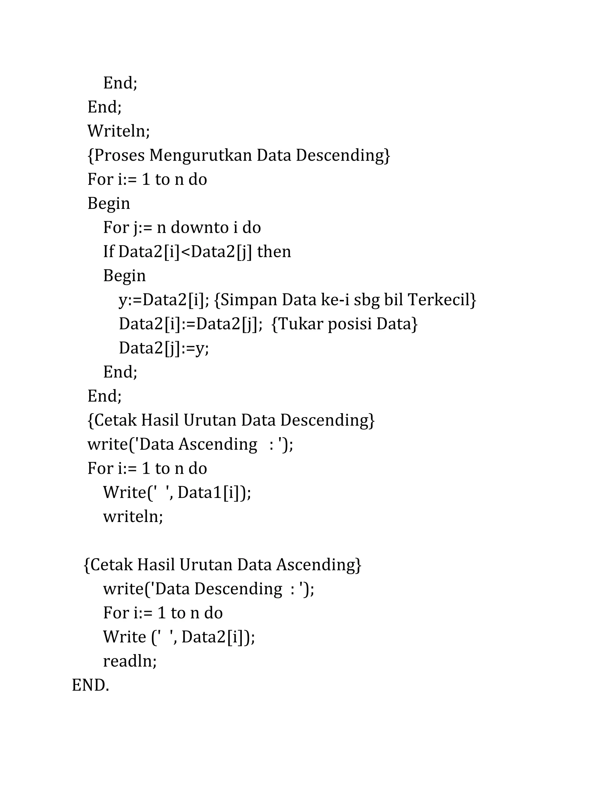 y:=Data2[i]; {Simpan Data ke-i sbg bil Terkecil}