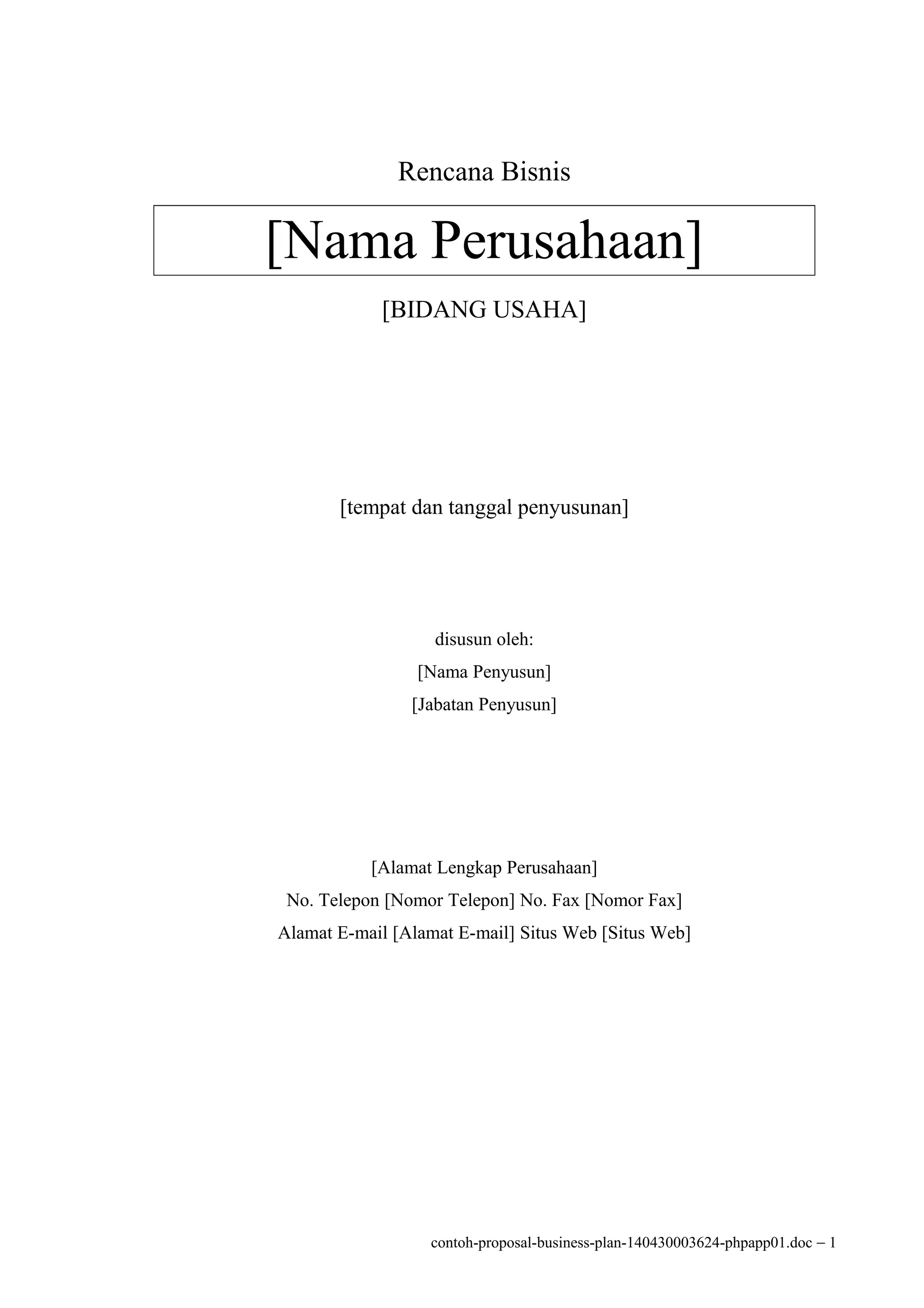 Dokumen ini adalah rencana bisnis yang mencakup berbagai aspek penting seperti profil perusahaan, analisis pasar, rencana produksi, sumber daya manusia, serta analisis keuangan. Semua elemen ini disusun untuk memberikan gambaran mengenai prospek pengembangan perusahaan dan kebutuhan investasi. Rencana ini juga mencakup strategi pemasaran dan manajemen risiko yang relevan untuk mencapai tujuan bisnis.
