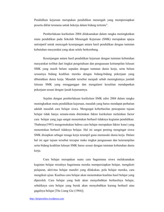 Dokumen ini adalah proposal skripsi yang membahas pengaruh cara belajar terhadap prestasi belajar siswa kelas 1 jurusan administrasi perkantoran di SMK PGRI 2 Malang. Penelitian ini bertujuan untuk mengetahui pola cara belajar siswa serta hubungannya dengan prestasi belajar dalam mata diklat melakukan prosedur administrasi. Masalah cara belajar yang buruk pada siswa berkontribusi terhadap rendahnya prestasi belajar, sehingga penelitian ini berfokus pada upaya perbaikan metode pembelajaran.
