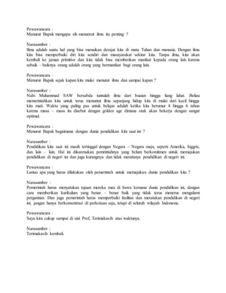 Professor Widodo menekankan pentingnya menuntut ilmu sepanjang hayat, menganggap ilmu sebagai nafas yang harus terus dipelajari untuk memperbaiki diri dan bermanfaat bagi orang lain. Ia juga mengkritik kondisi pendidikan di Indonesia yang tertinggal dibandingkan negara maju, menginginkan pemerintah untuk memperbaiki kurikulum dan meratakan akses pendidikan. Menurutnya, pendidikan harus dimulai sejak usia dini dalam masa golden age agar dapat memaksimalkan potensi belajar.