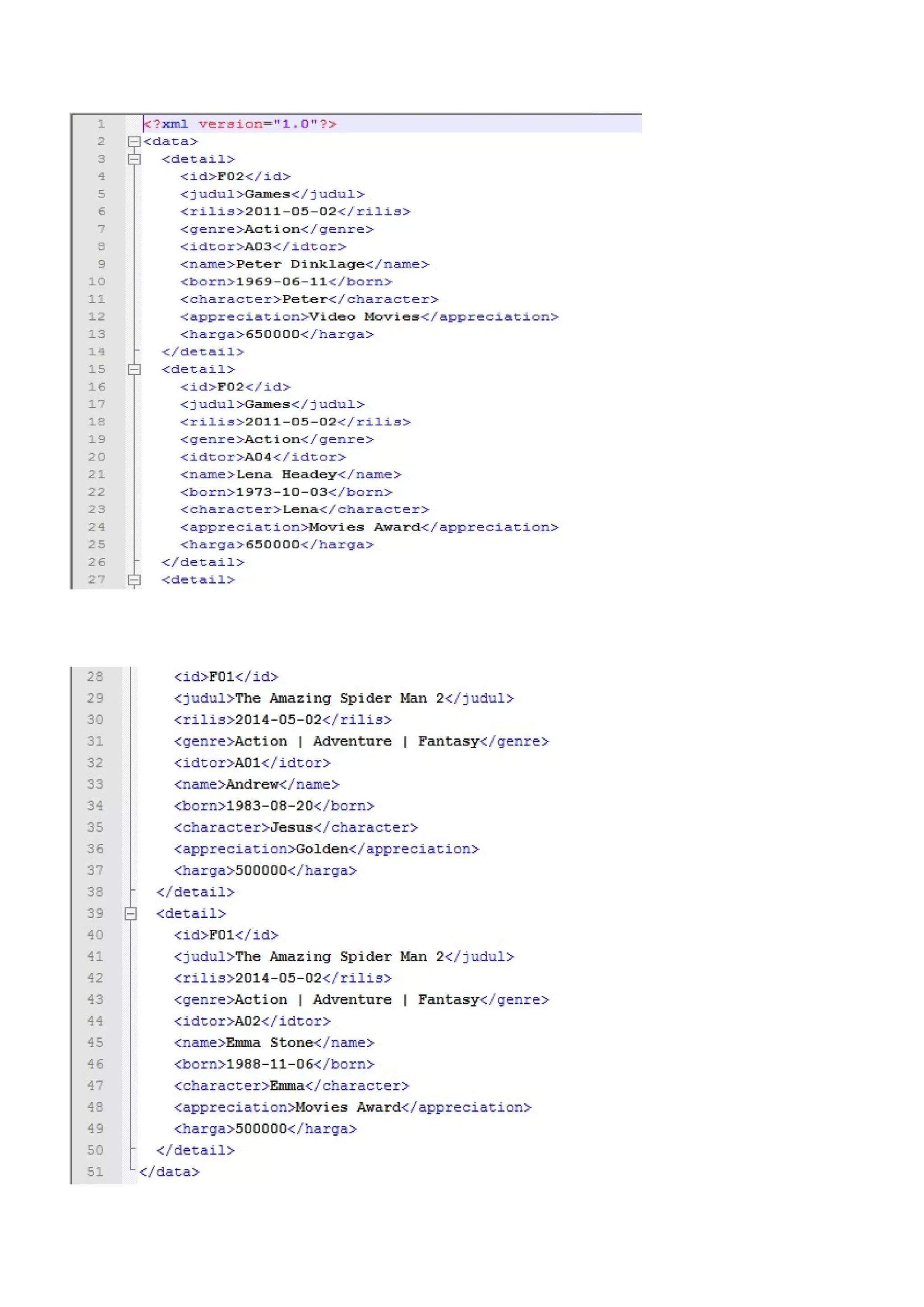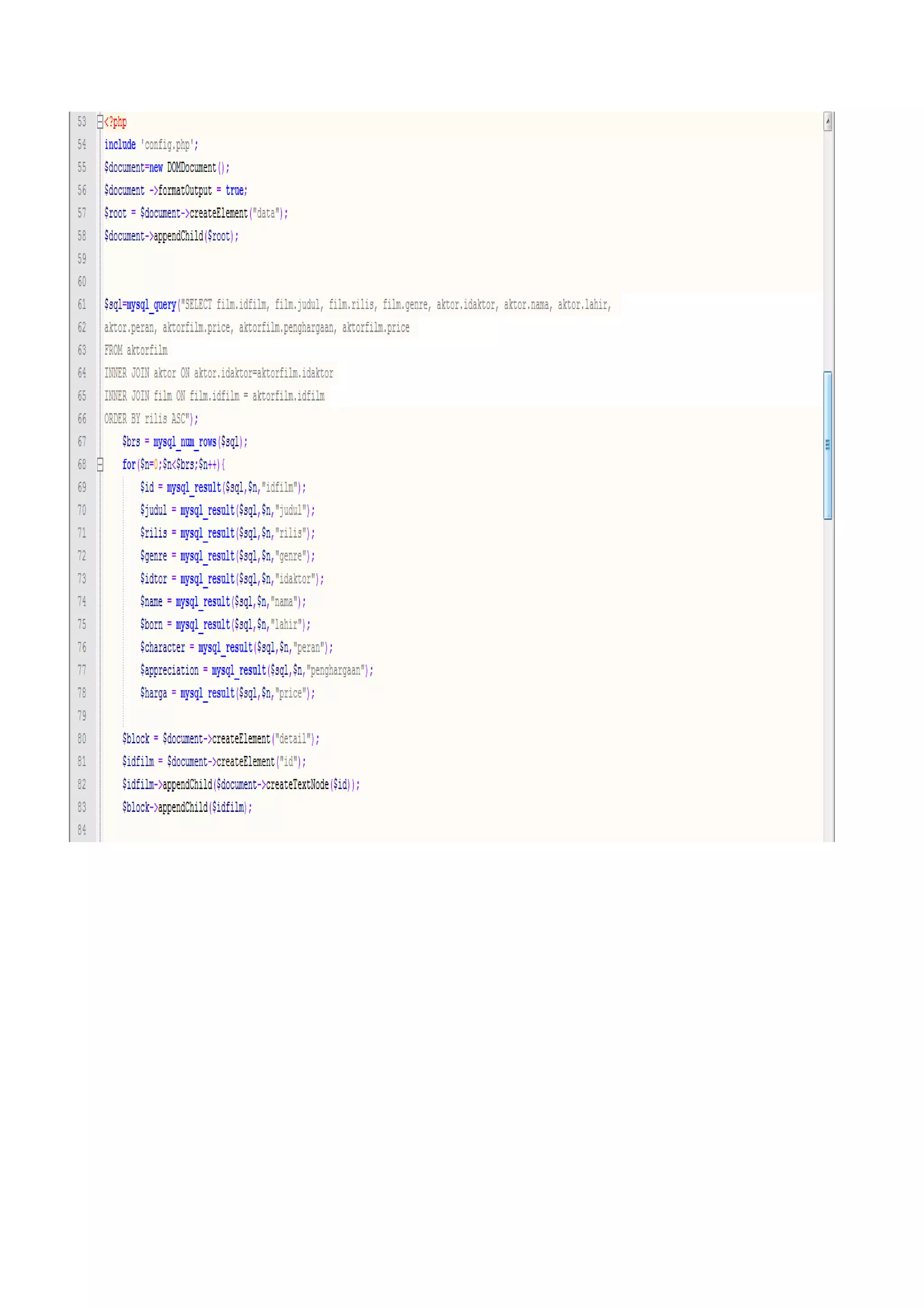 Dokumen ini membahas cara membuat website CRUD yang dapat menghasilkan file XML dengan menggunakan PHP dan database yang melibatkan tiga tabel: film, aktor, dan tabel penghubung. Proses pembuatan meliputi pembuatan file konfigurasi, penggunaan CSS dan Bootstrap untuk tampilan, serta pengaturan file PHP untuk operasi termasuk menampilkan, menambah, mengedit, dan menghapus data. Hasil akhirnya adalah file XML yang dihasilkan dari pengolahan data dalam aplikasi.