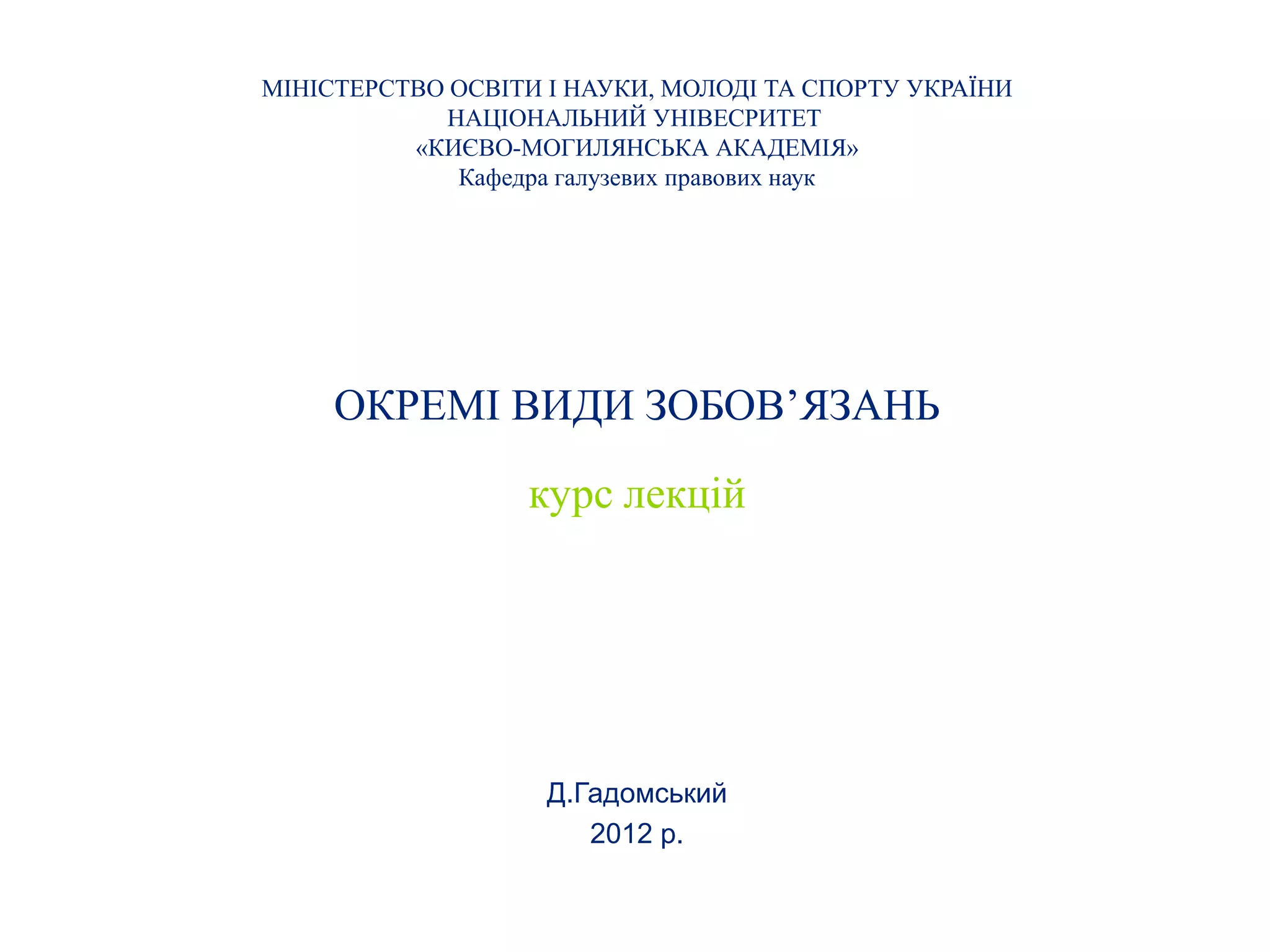 ОКРЕМІ ВИДИ ЗОБОВ’ЯЗАНЬ