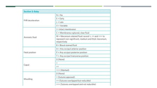 Contracted pelvis, also known as pelvic disproportion, occurs when the essential diameters of the pelvis are shortened, altering the normal mechanism of labor. It can be caused by developmental, metabolic, traumatic or other factors. Pelvises are classified based on degree of contraction and pelvic architecture. Diagnosis involves history, physical exam including internal and external pelvimetry, and sometimes radiological imaging. An internal pelvimetry exam evaluates the inlet, cavity, and outlet to determine pelvic adequacy for vaginal delivery.