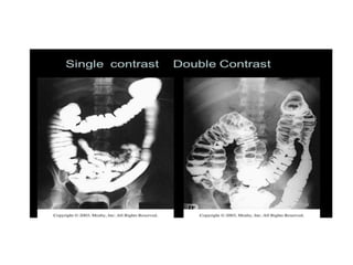 The document discusses contrast agents used in medical imaging, including desirable properties like safety and effectiveness, types such as positive iodine-based and negative air/gas agents, administration methods, and examples of examinations. Adverse effects are outlined for different contrast media based on properties like osmolality and ionicity. The ideal contrast agent is described as having high solubility, stability, biocompatibility, and selective excretion with minimal adverse impacts.