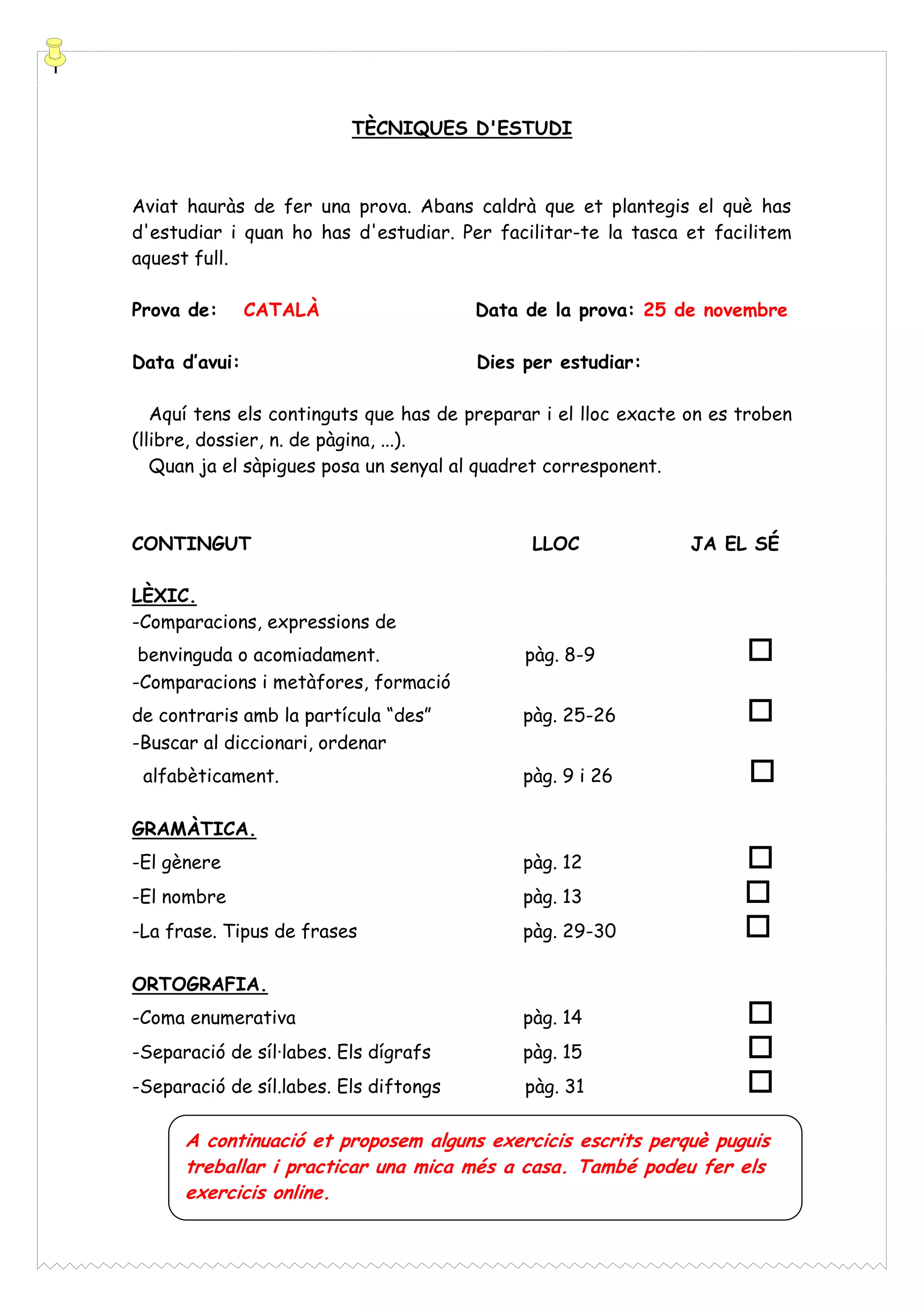 d'estudiar i quan ho has d'estudiar. Per facilitar-te la tasca et facilitem