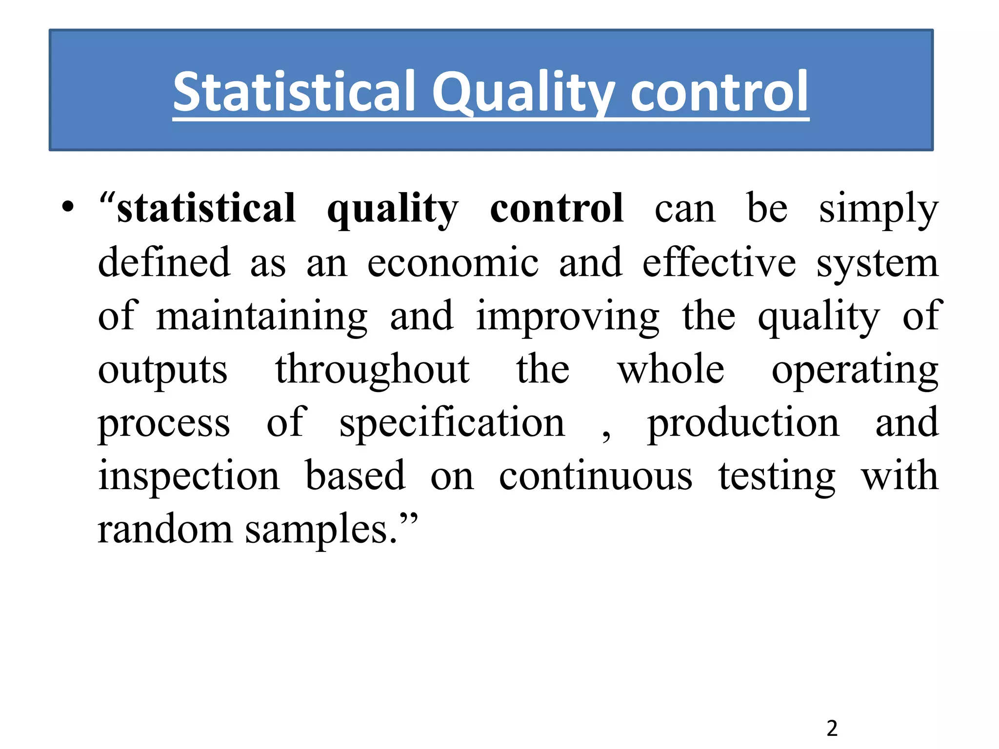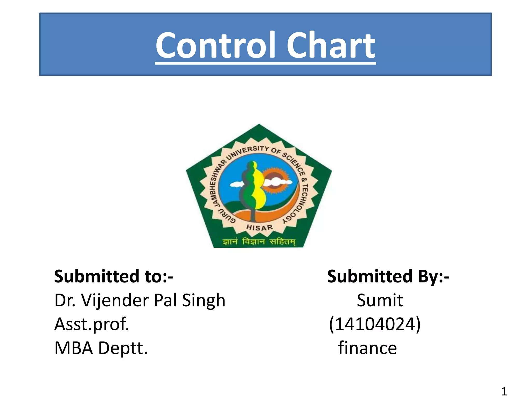 This document discusses various statistical quality control charts used to monitor manufacturing processes, including control charts, X-bar charts, R-charts, C-charts, P-charts, and NP-charts. A control chart is a graphical display that consists of a central line for the average and upper and lower control limits. X-bar and R-charts are used for continuous numerical data to control variations in average quality and dispersion. C-charts monitor the number of defects per unit while P-charts control the fraction defective. NP-charts simplify P-charts by plotting the number of defectives rather than the fraction. These statistical charts help maintain and improve quality throughout production.