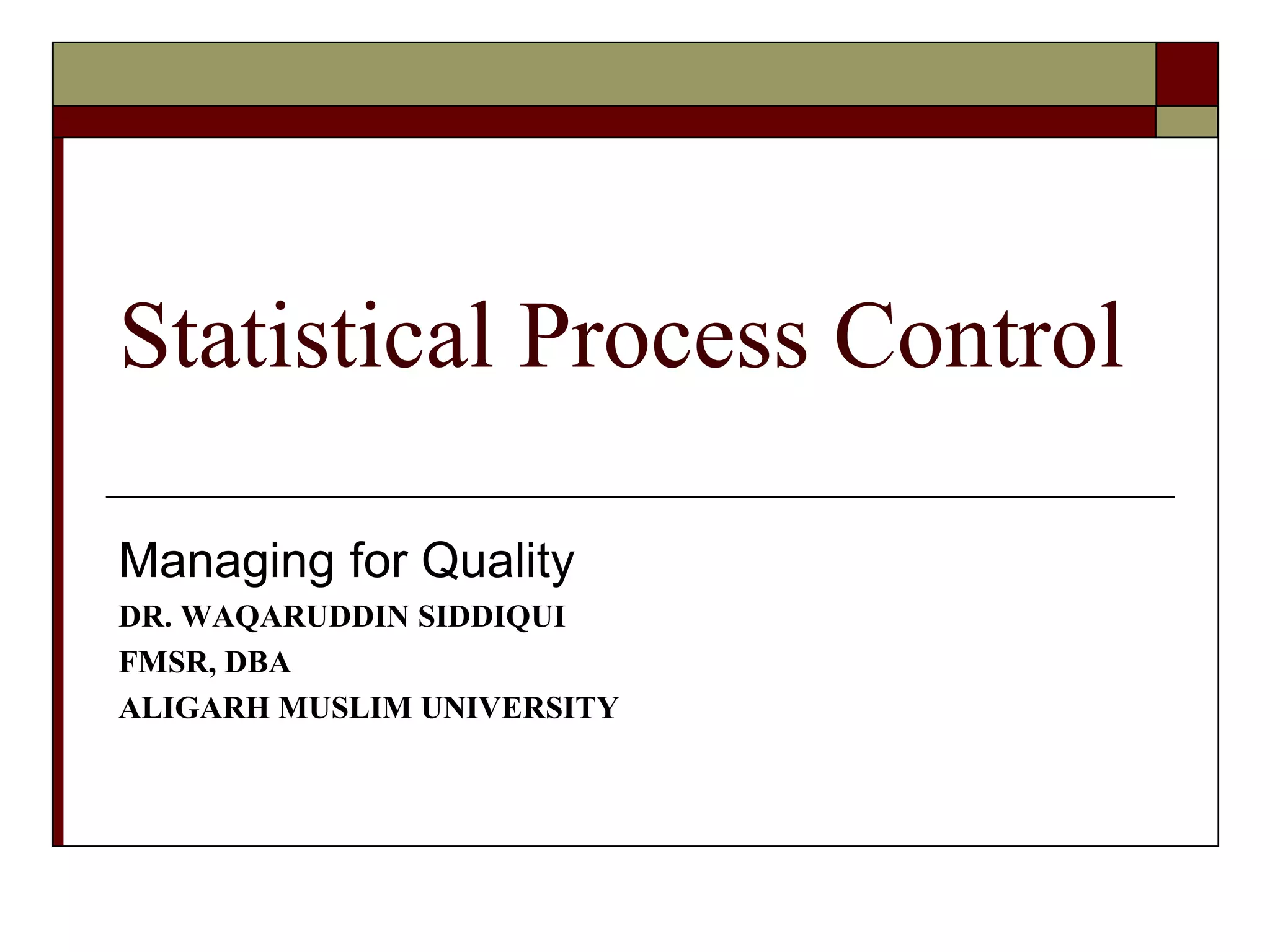 This document discusses statistical process control and control charts. It defines the goals of control charts as collecting and visually presenting data to see when trends or out-of-control points occur. Process control charts graph sample data over time and show the process average and upper and lower control limits. Attribute control charts indicate whether points are in or out of tolerance, while variables charts measure attributes like length, weight or temperature over time. Examples are provided to illustrate p-charts, R-charts and X-bar charts using hotel luggage delivery time data.