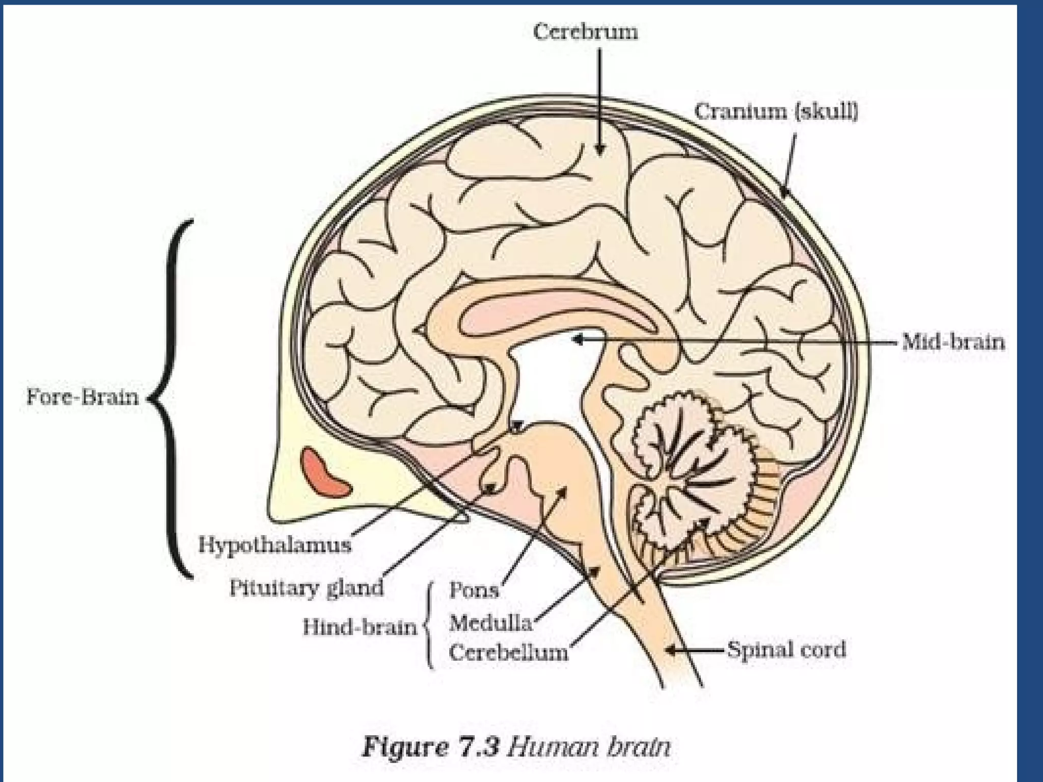 The document discusses control and coordination in the human body. It begins by defining a neuron and describing different types of reflex actions - spinal reflexes which only involve the spinal cord and cerebral reflexes which also involve the brain. It then discusses the reflex arc and components of reflex action. Next, it describes the three main regions of the brain - forebrain, midbrain and hindbrain - and key structures and functions within each region like the cerebrum, cerebellum and brainstem. Finally, it discusses how the brain is protected by membranes, fluid and the skull, and the role of the endocrine system in releasing hormones to coordinate functions throughout the body.