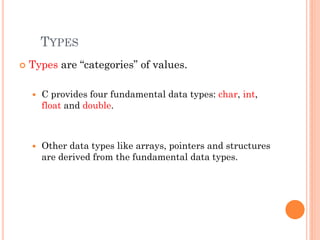 The document outlines fundamental data types in C programming, including char, int, float, and double, along with their sizes and characteristics. It explains type conversion, both implicit and explicit, and provides examples of using the sizeof operator and various math library functions. Additionally, it covers flow control structures like if statements and switch-case statements, along with example code for conditional checks and calculations.