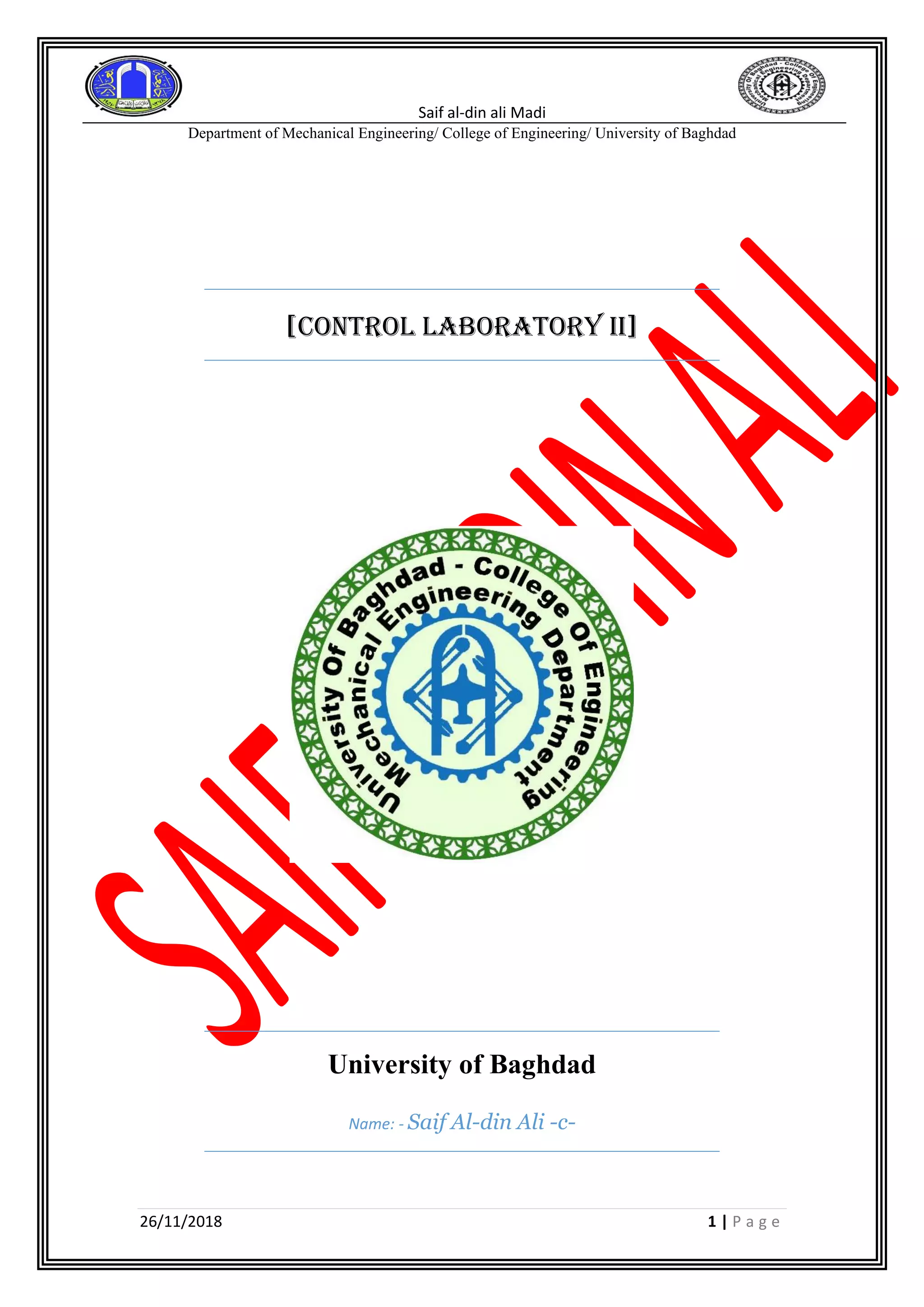 This document describes an experiment performed on a DC motor to determine its steady state gain. Measurements were taken of the motor's angular velocity and input voltage over time. The steady state gain (Ks) was calculated from these measurements for both the motor and generator configurations. Ks was found to be 7.36356 rpm/V on average for the motor and 5.596616 rpm/V for the generator. A proportional relationship between voltage and angular velocity was observed from the plotted data. The DC motor model and experimental results showed some non-linear behavior, likely due to load and operating conditions.