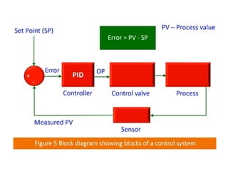 The document discusses the differences between a system and a control system, using a fan as an example. It explains that while a fan can function as a system, it can also be classified as a control system within a feedback process. Additionally, it includes information about control loop diagrams, emphasizing the structure of feedback control systems.