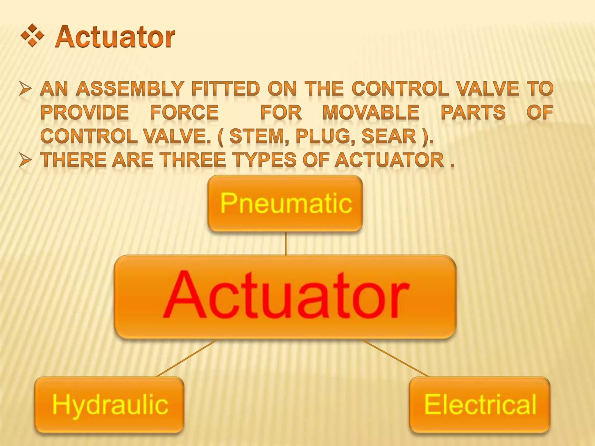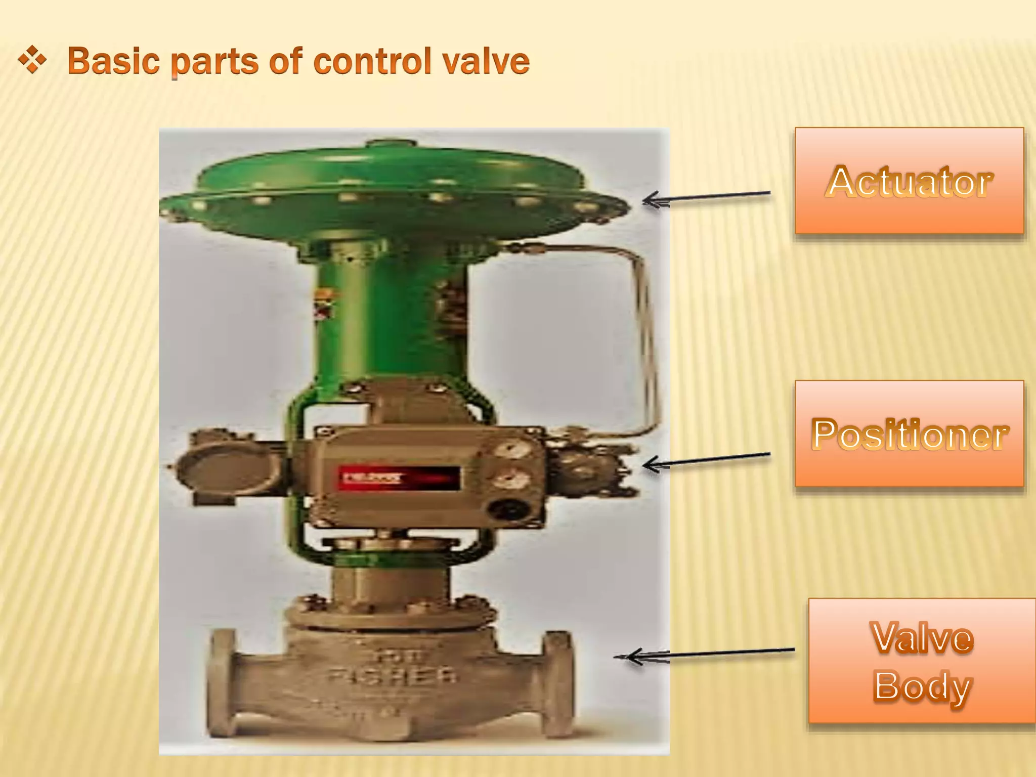 This document discusses control valves, including their classification, basic parts, types, and how they work. Control valves can regulate fluid flow and control process variables under controller commands. There are two main types: linear and rotary. The basic parts include a valve body, bonnet, plug, trim, and actuator. Actuators are either pneumatic or electric and convert control signals into valve stem movement. Positioners translate control signals into standardized signals for the actuator. Trim parts like the stem, seat and plug are exposed to the process flow.